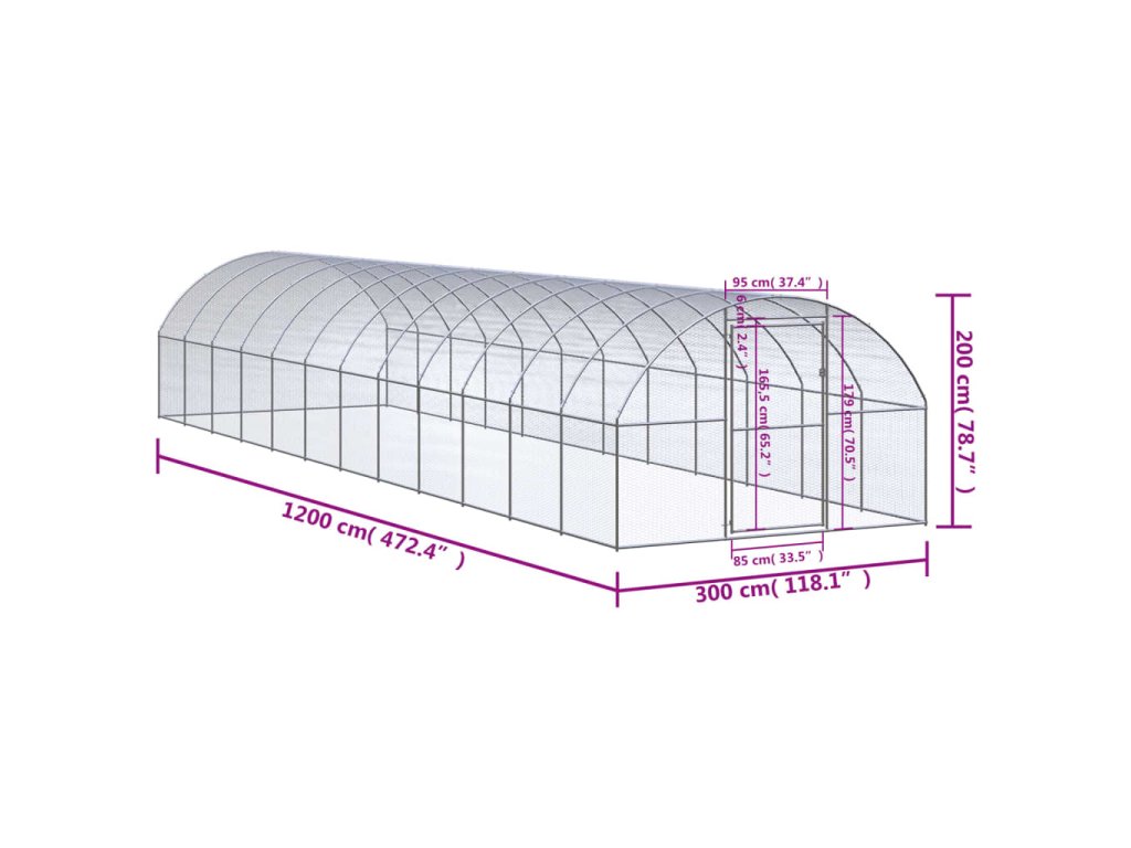 Venkovní klec pro kuřata 3 x 12 x 2 m pozinkovaná ocel 3095468
