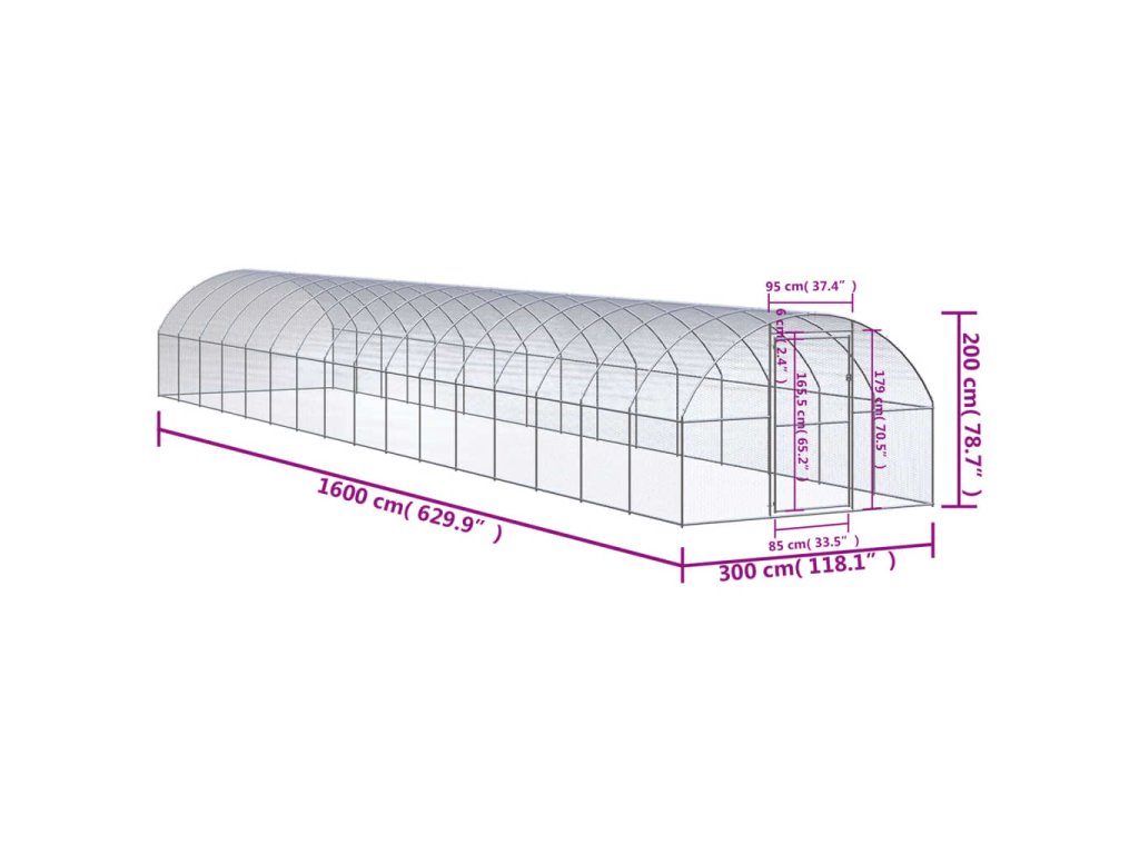 Venkovní klec pro kuřata 3 x 16 x 2 m pozinkovaná ocel 3095469