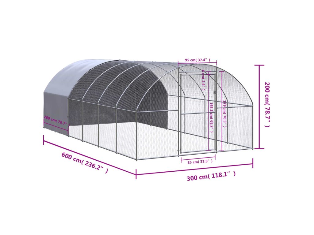 Venkovní klec pro kuřata 3 x 6 x 2 m pozinkovaná ocel 3095474
