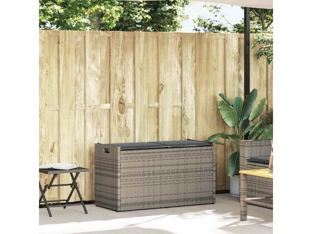 Venkovní lavice s polštářem šedá 100 cm Poly ratan 4104062