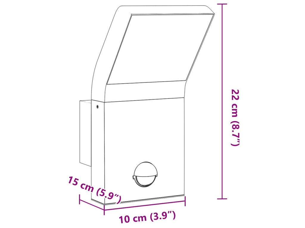 - Čidlo pohybu PIR: Venkovní nástěnné svítidlo je vybaveno vestavěným PIR (pasivním infračerveným) čidlem pohybu s detekčním úhlem 120° a účinným dosahem až 10 metrů. Světlo se automaticky aktivuje při detekci pohybu a dobu svícení lze nastavit v rozmezí 8 sekund až 3,5 minuty.