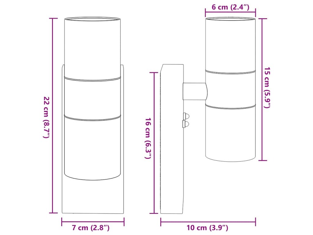 Venkovní nástěnné svítidlo 2 pcs Černá 7 x 10 x 22 cm 4005996