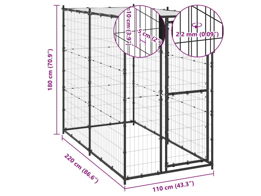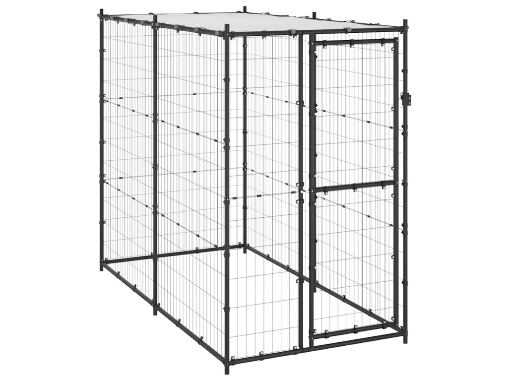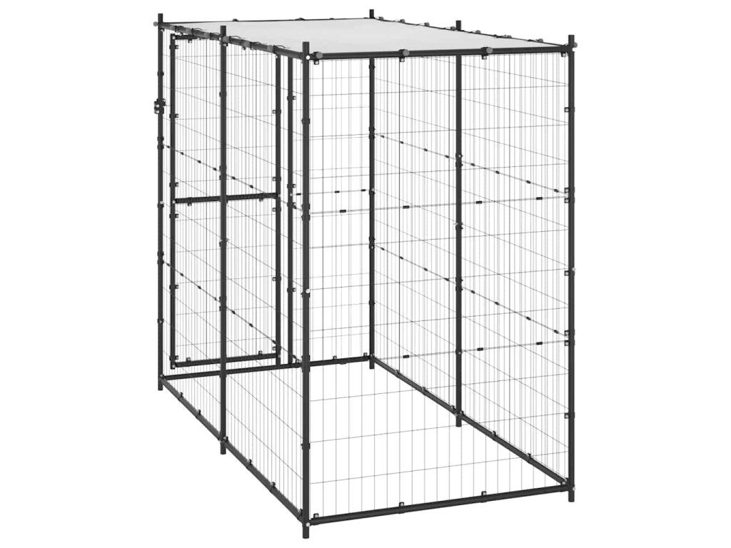 Tento psí kotec poskytuje dostatek prostoru pro cvičení. Pletivo po celém obvodu pomáhá předcházet neplechám a neočekávaným nehodám a zároveň umožňuje větrání. Díky robustní ocelové konstrukci s práškovým nástřikem je tento psí kotec odolný a vyrobený pro dlouhou životnost. Součástí je i vrchní stříška z PE, která je voděodolná a odolná vůči UV záření. Dveře s výklopnými dveřmi a uzamykatelným západkovým systémem zajišťují vašim psům větší bezpečnost.