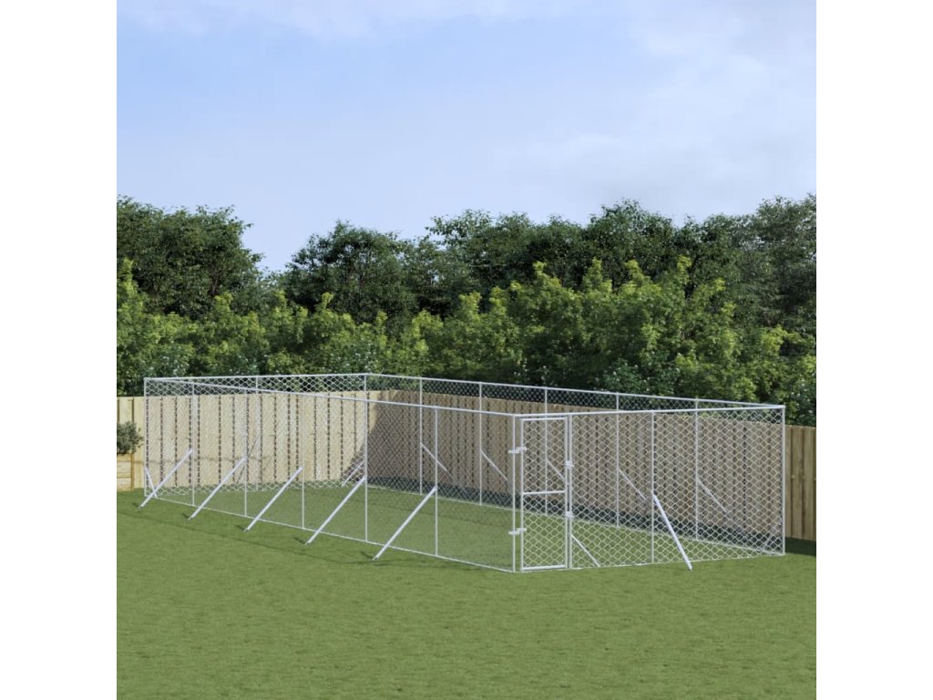 Venkovní psí kotec stříbrný 4 x 12 x 2 m pozinkovaná ocel 3190457
