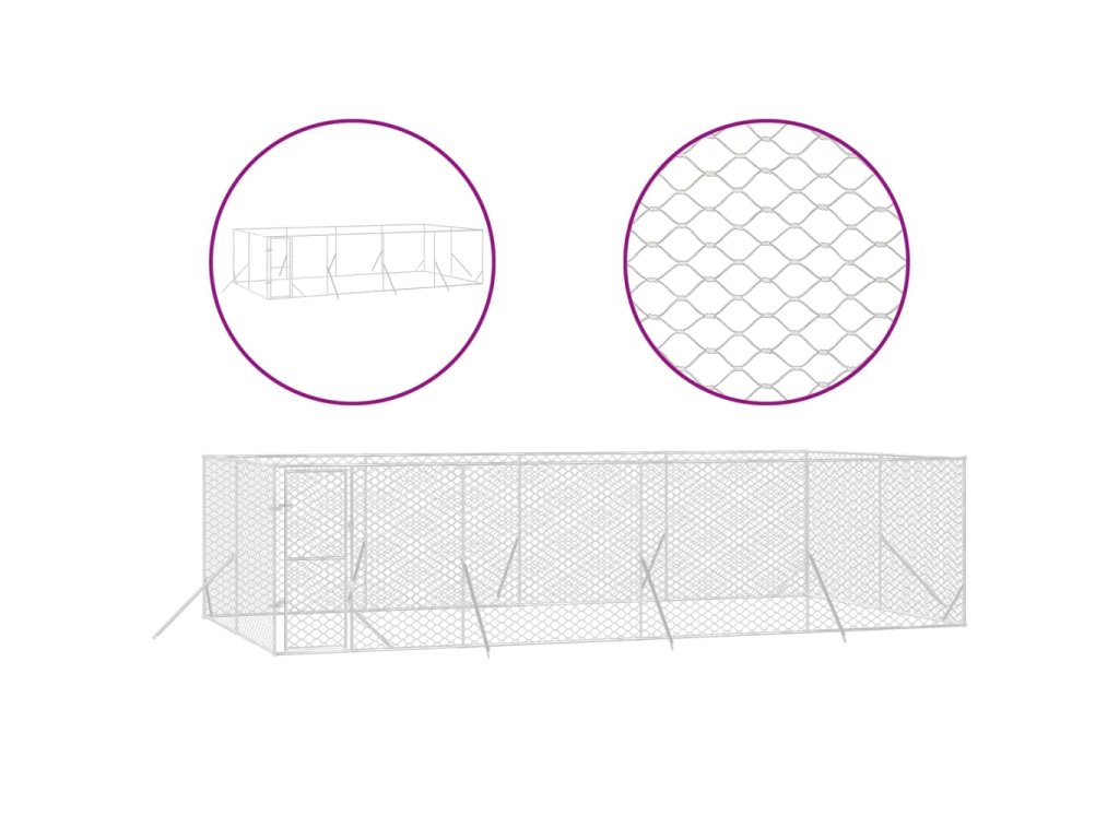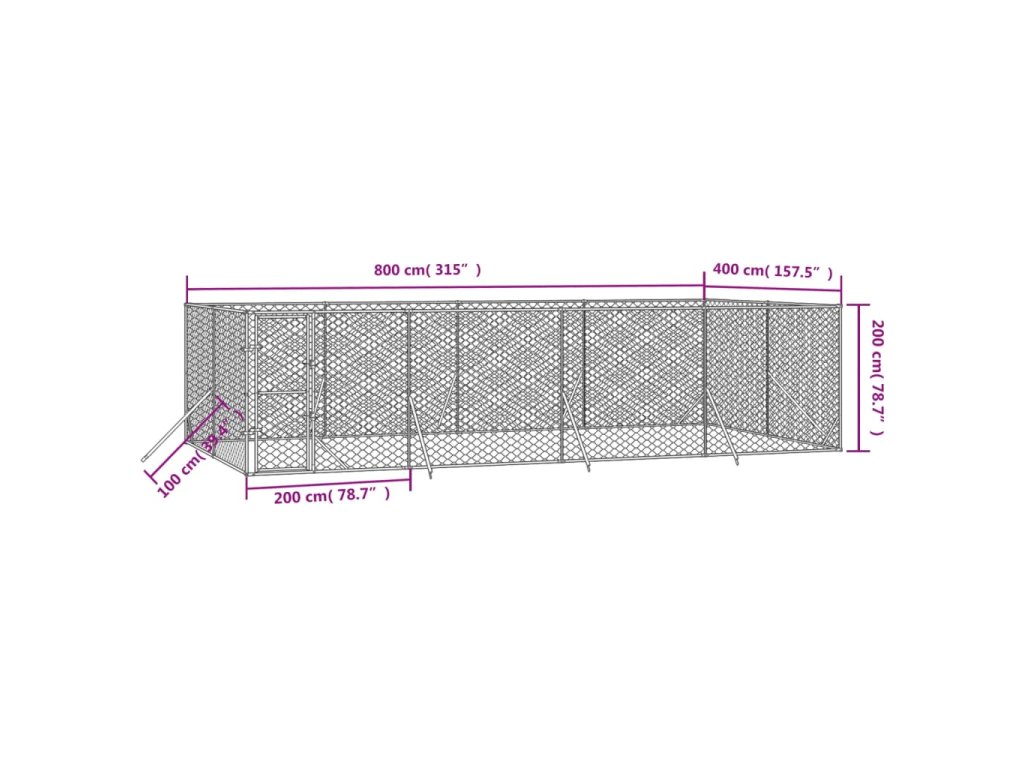 Venkovní psí kotec stříbrný 8 x 4 x 2 m pozinkovaná ocel 3190463