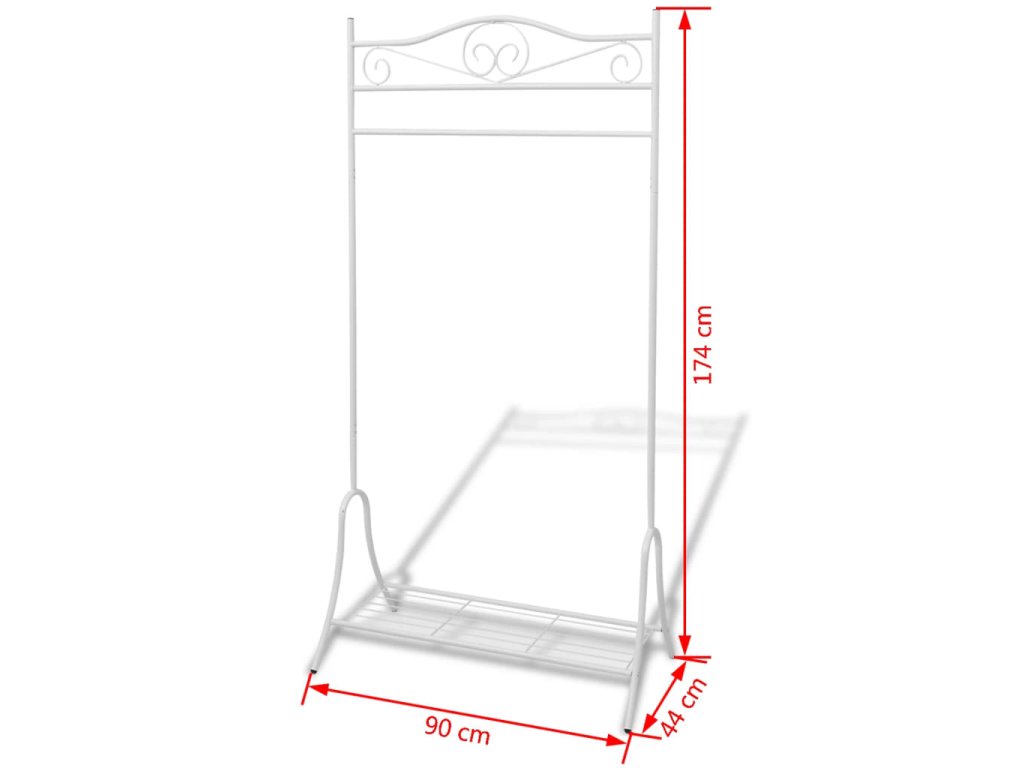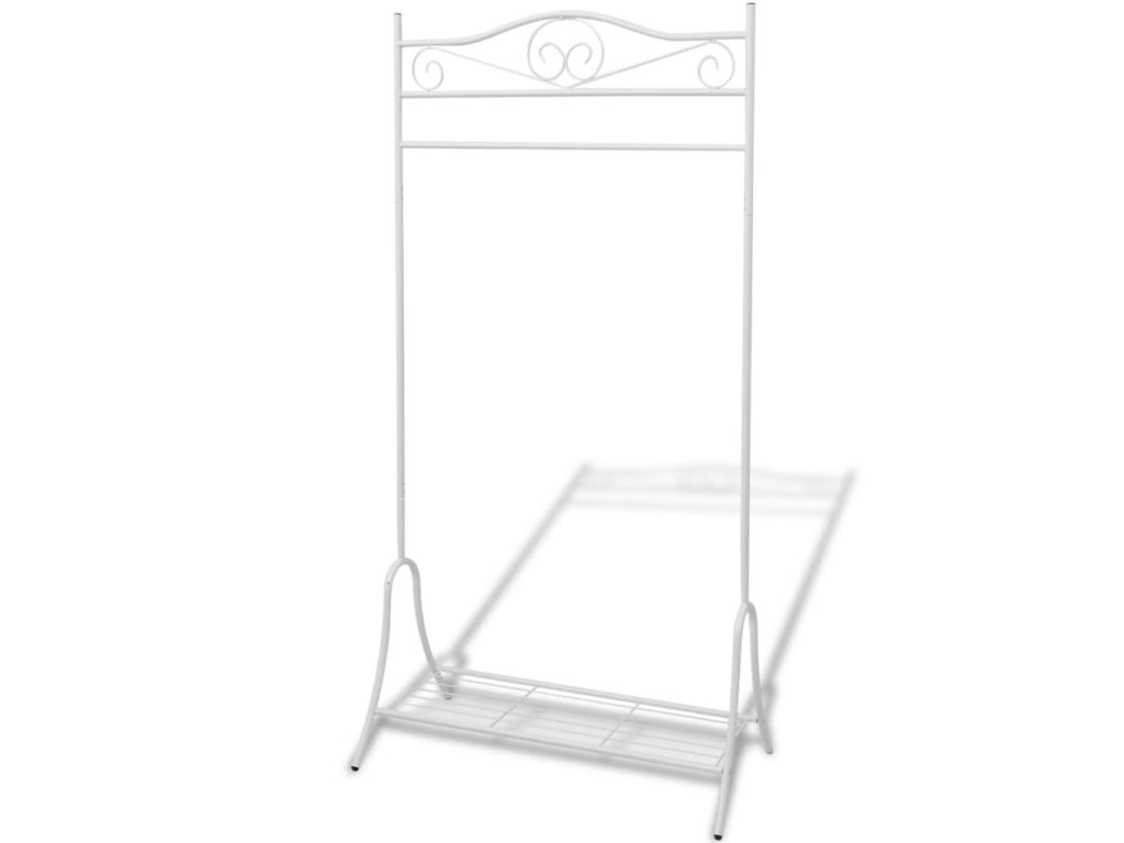 Díky elegantním ornamentálním detailům je tento věšák na šaty stejně tak dekorativní, jako je praktický. Tento věšák na oděvy má robustní ocelovou konstrukci, takže je zároveň lehký i pevný. Police na dně se dá používat k ukládání bot nebo košíků.