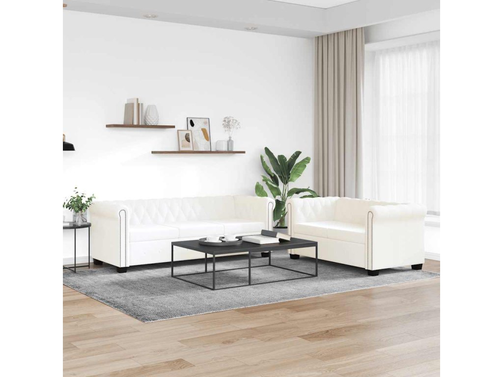 vidaXL Chesterfield 2místná a 3místná sedačka umělá kůže bílá 272250