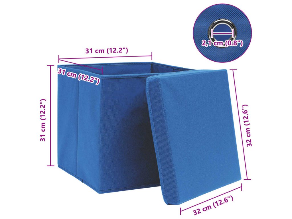 Praktické úložné boxy jsou vyrobené z netkané textilie, takže jsou vskutku velmi odolné. Na každém boxu je víko, které chrání uložené věci před zašpiněním. Každý úložný box je také vybavený praktickým kovovým očkem, za který box snadno vytáhnete z vašeho šatníku, police, skříňky atd. Když je zrovna nepoužíváte, dají se úložné boxy snadno složit, aby vám zbytečně nepřekážely.