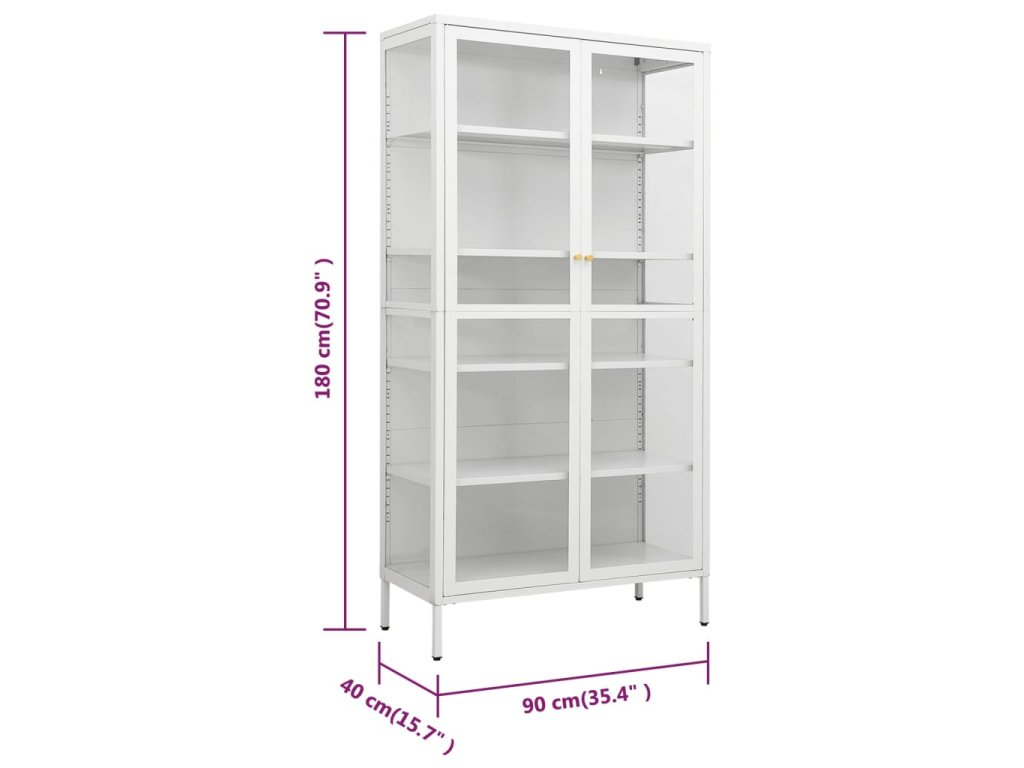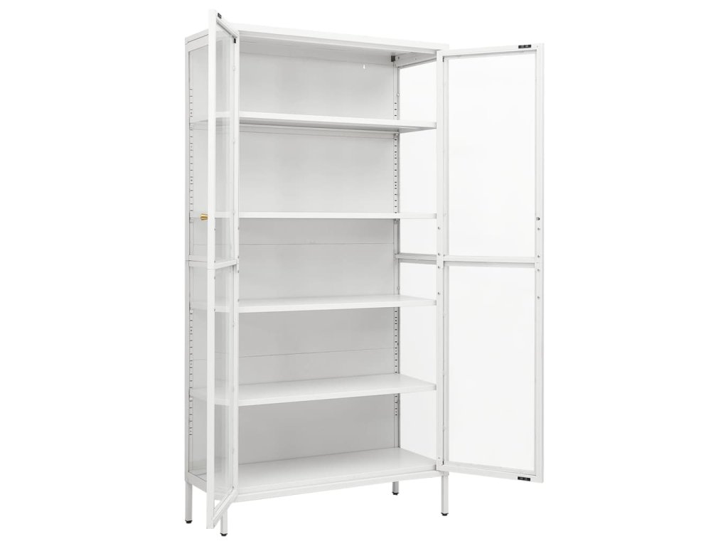 Vitrína bílá 90 x 40 x 180 cm ocel a tvrzené sklo 336080