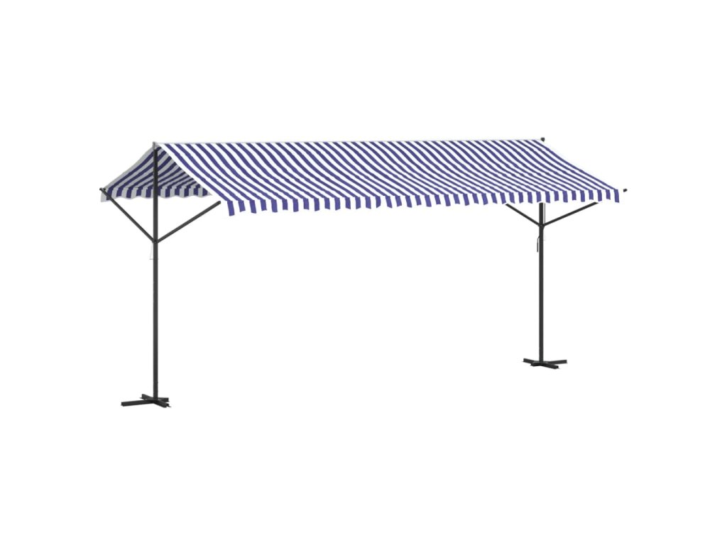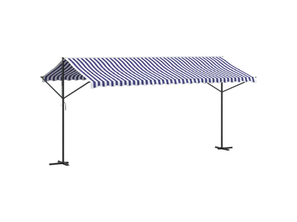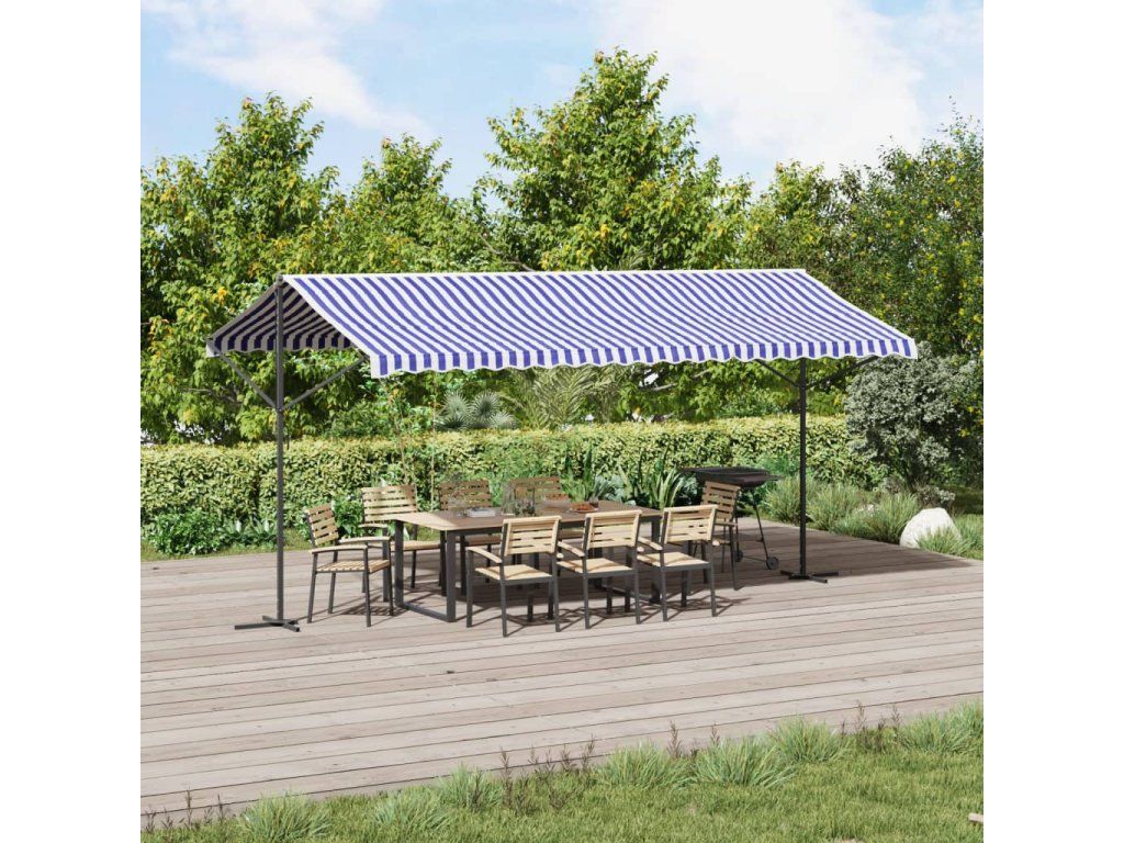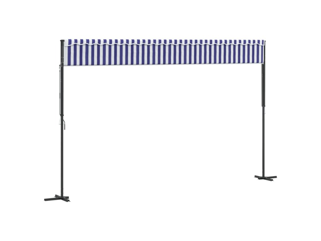 Volně stojící markýza modrá a bílá 500 x 300 cm textil a ocel 368933