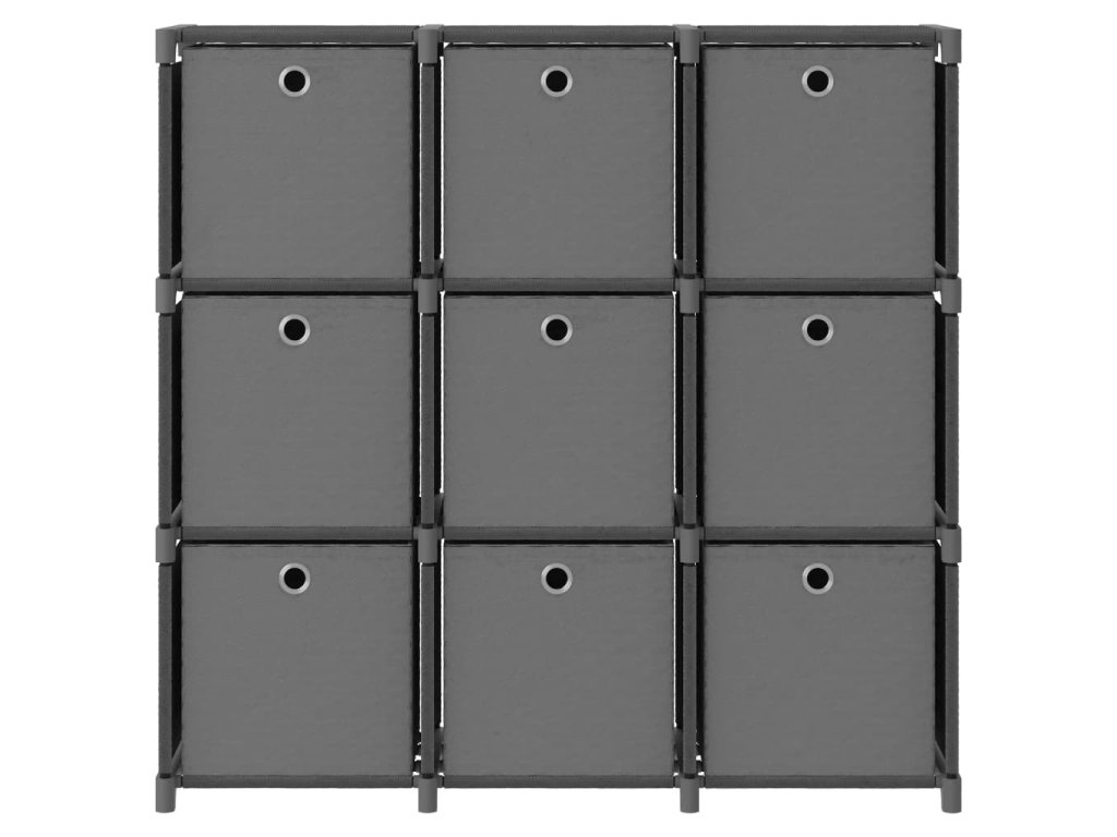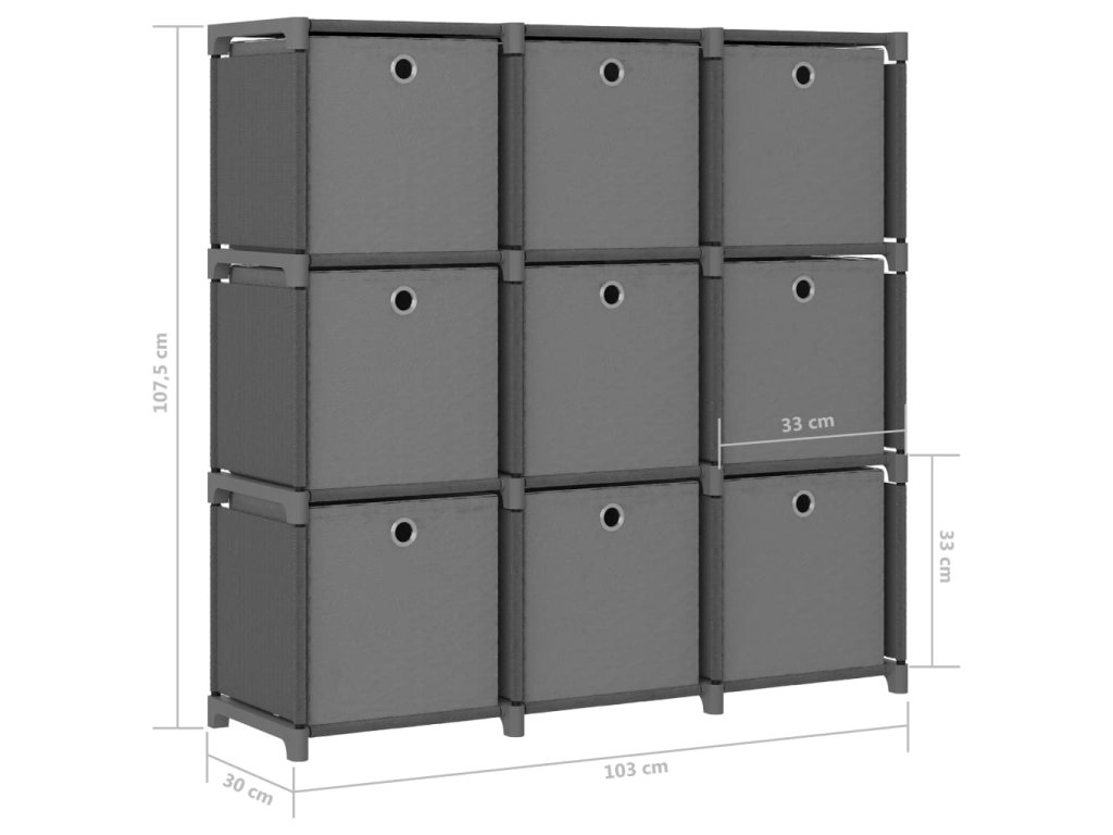 Výstavní police 9 přihrádek s boxy šedá 103x30x107,5 cm textil 322613