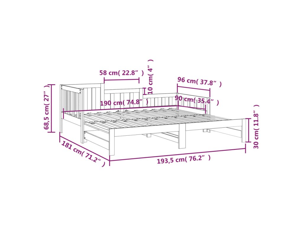 - Výsuvná rozkládací pohovka: Dřevěnou válendu lze během dne používat jako pohovku a přes noc jako postel, která vám nabídne rychle řešení k uložení vašich hostů a zároveň vám ušetří místo.