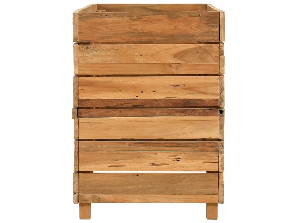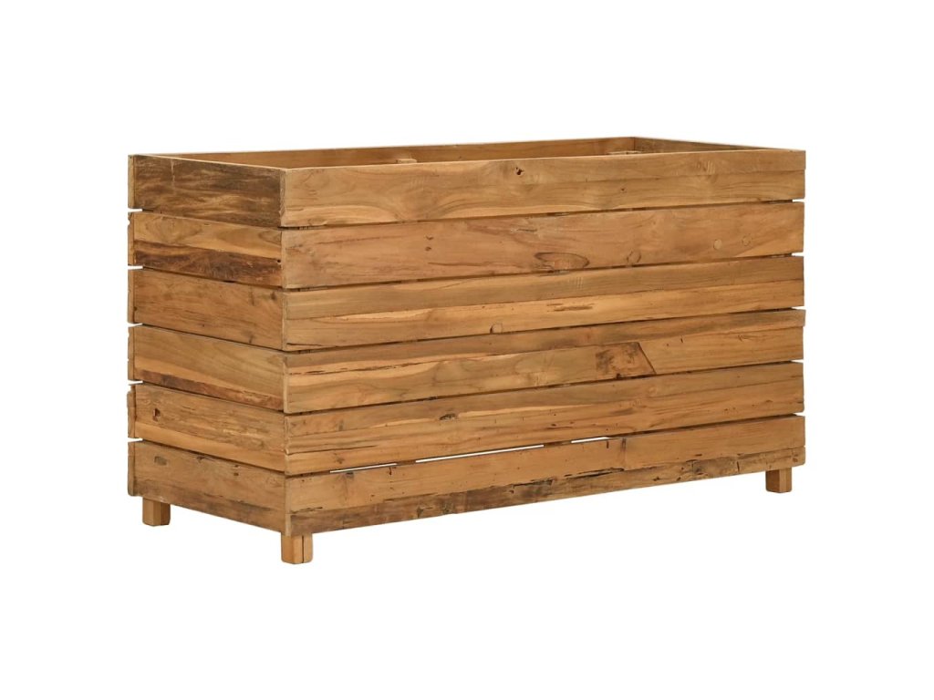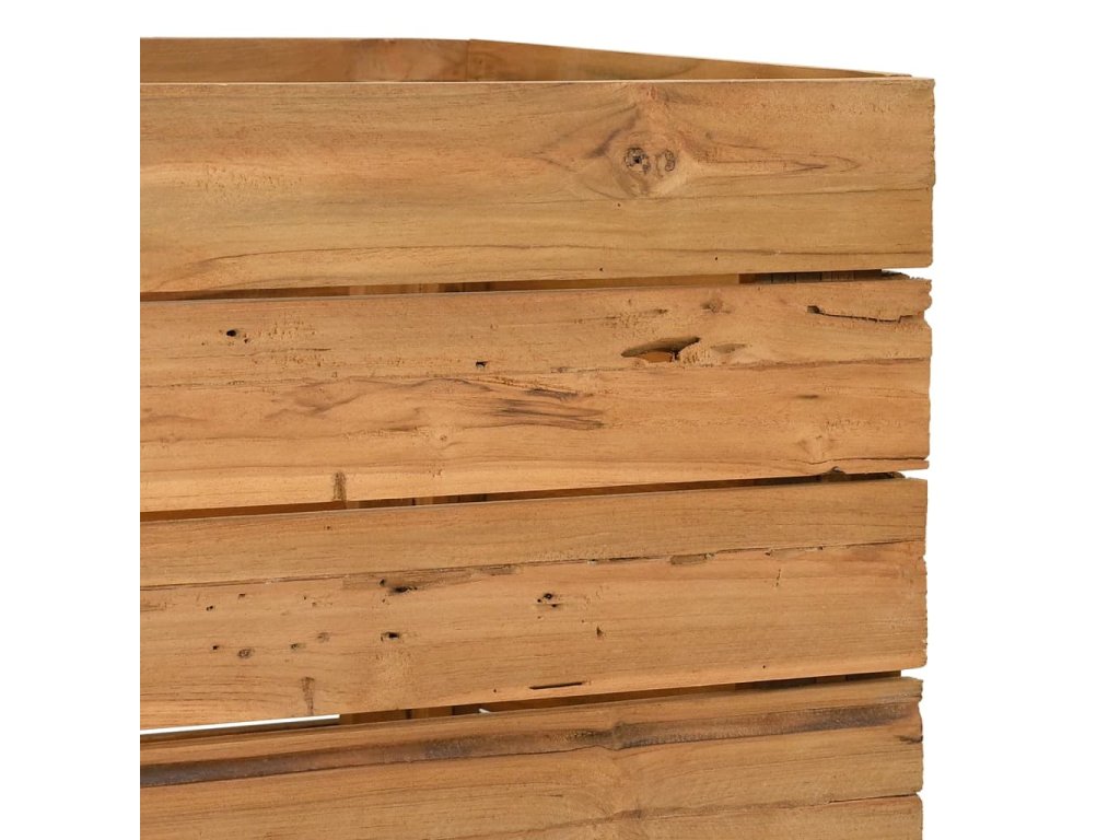 Tento truhlík je vyrobený z recyklovaného teakového dřeva, takže je mimořádně robustní a odolný. Krásná kresba dřeva propůjčuje každému kusu nábytku jeho jedinečný a od všech ostatních lehce odlišný vzhled. Čtyři dřevěné nohy ve spodní části zaručují lepší stabilitu. Dno truhlíku je opatřeno ocelovou podložkou, na kterou položíte své květináče. Sestavení tohoto produktu je snadné.