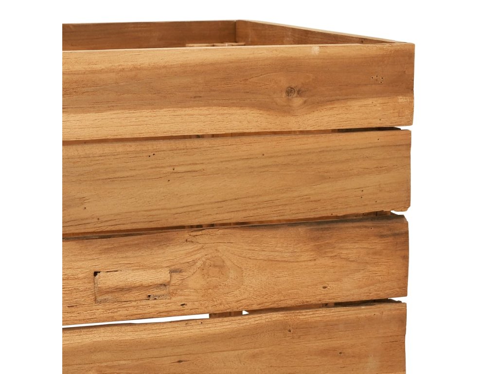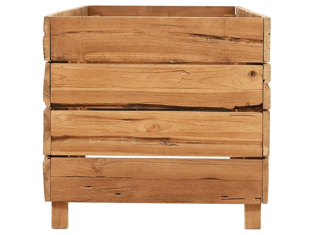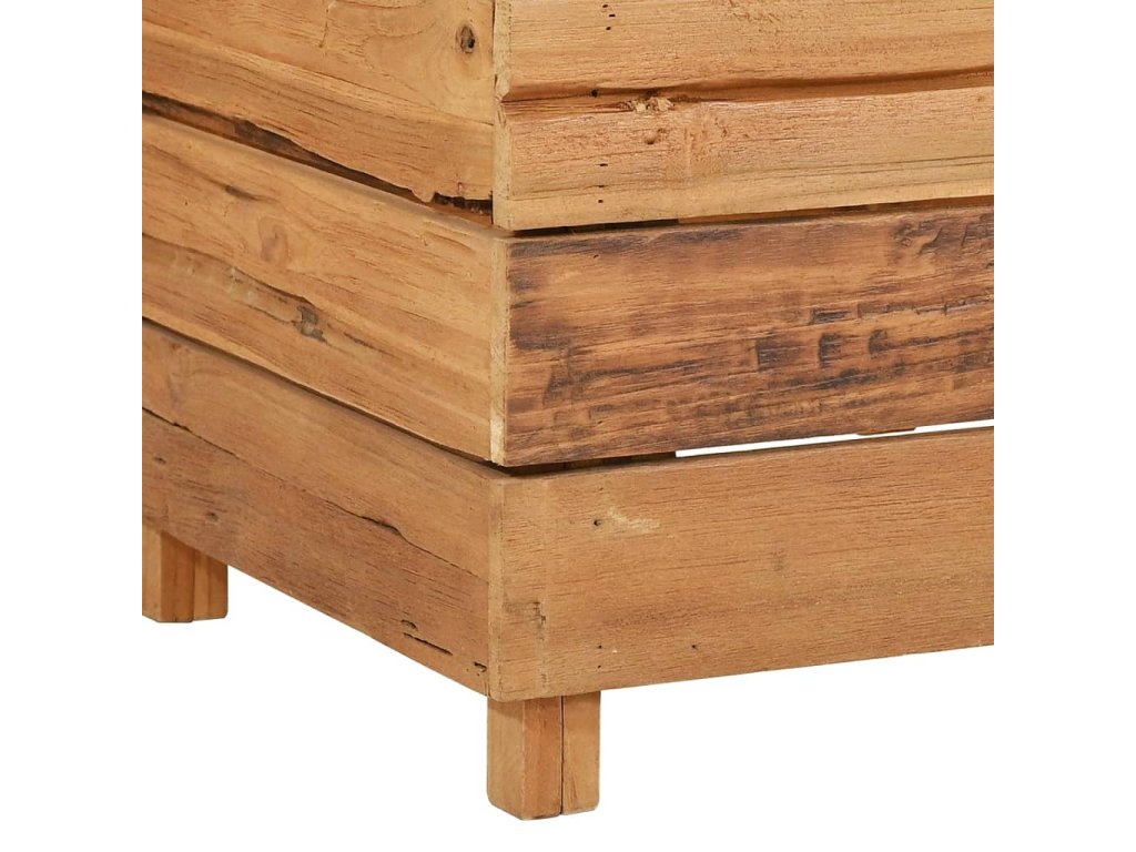 Tento truhlík je vyrobený z recyklovaného teakového dřeva, takže je mimořádně robustní a odolný. Krásná kresba dřeva propůjčuje každému kusu nábytku jeho jedinečný a od všech ostatních lehce odlišný vzhled. Čtyři dřevěné nohy ve spodní části zaručují lepší stabilitu. Dno truhlíku je opatřeno ocelovou podložkou, na kterou položíte své květináče. Sestavení tohoto produktu je snadné.