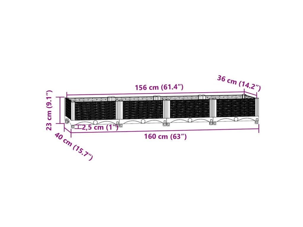 Vyvýšený záhon 160 x 40 x 23 cm polypropylen 153307