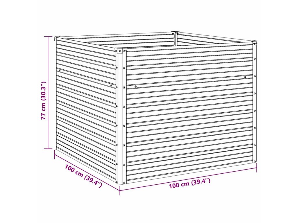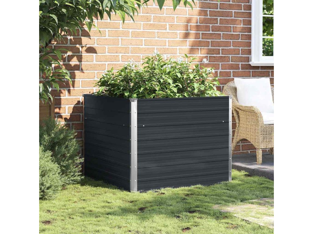 Vyvýšený záhon antracitový 100 x 100 x 77 cm pozinkovaná ocel 45725
