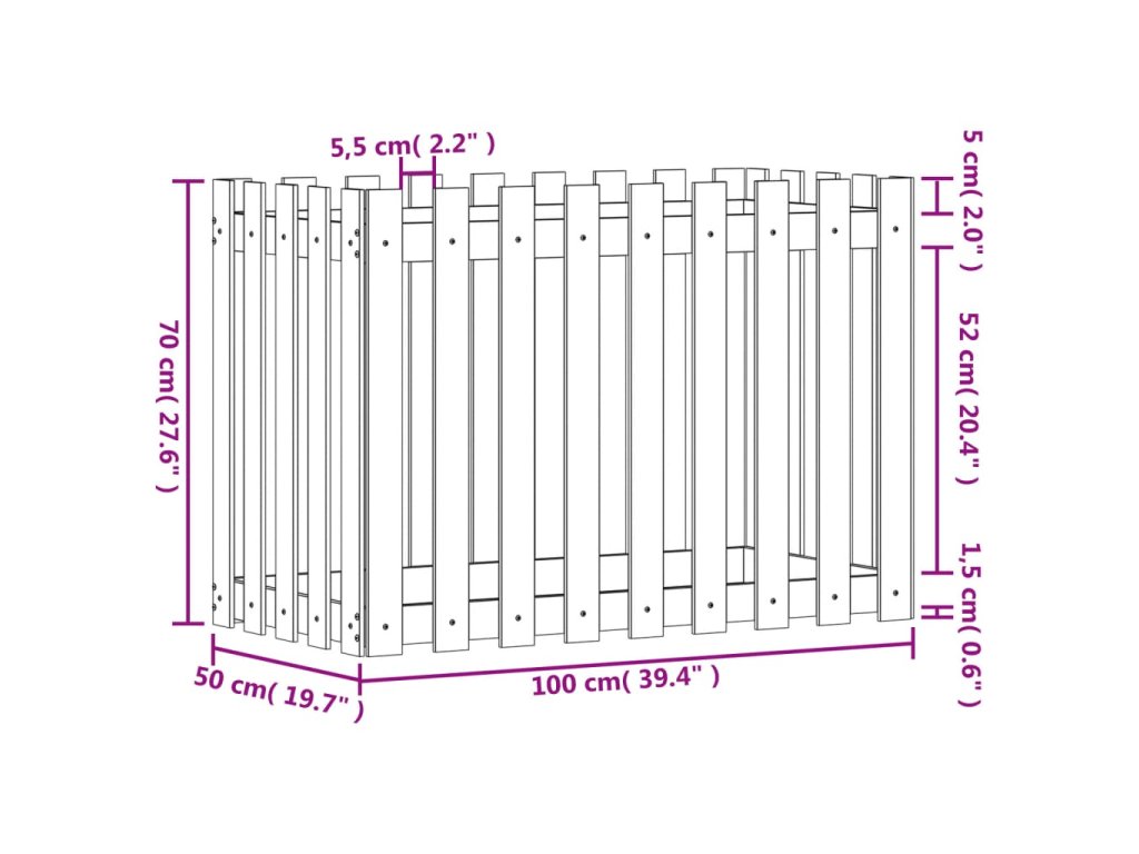 Vyvýšený záhon plotový design 100x50x70cm impregnovaná borovice 832486