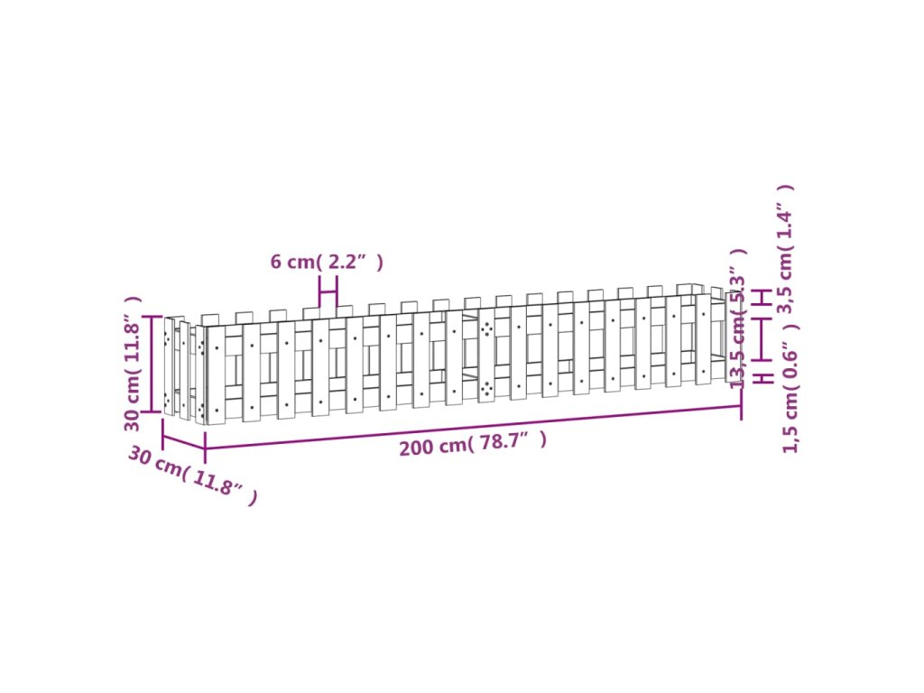 Vyvýšený záhon plotový design 200x30x30 cm masivní borovice 832502