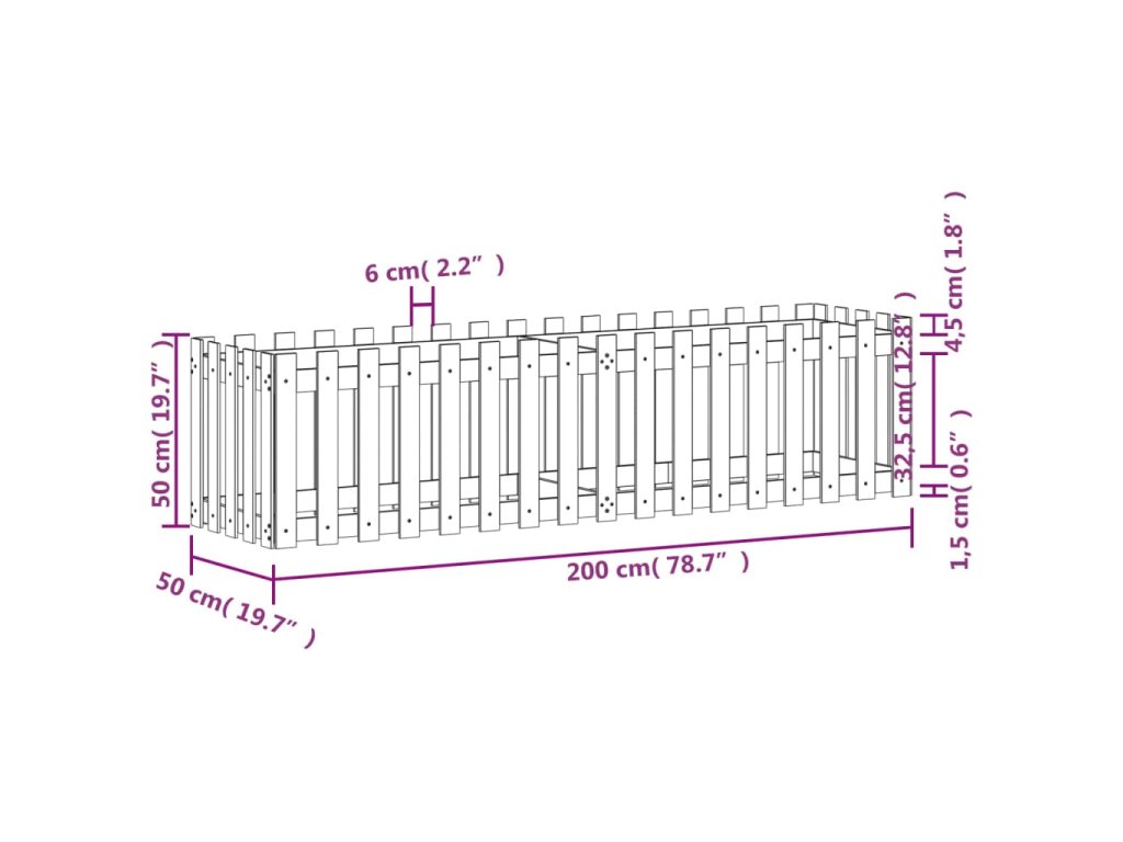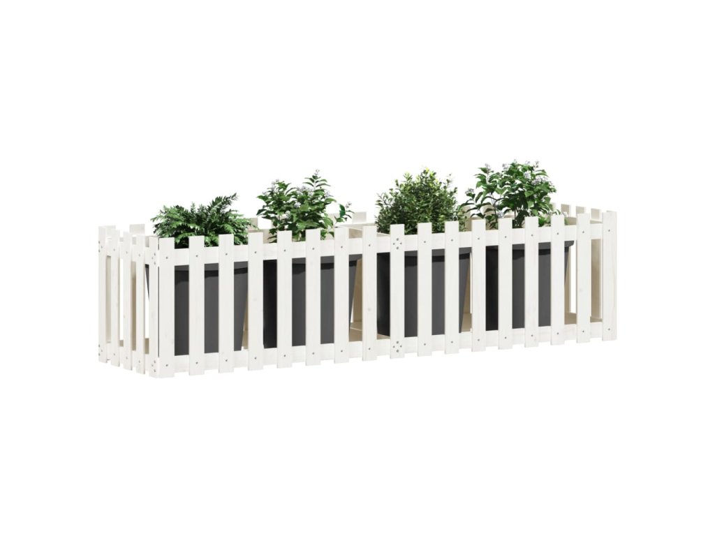 Vyvýšený záhon plotový design bílý 200x50x50 cm masiv borovice 832508