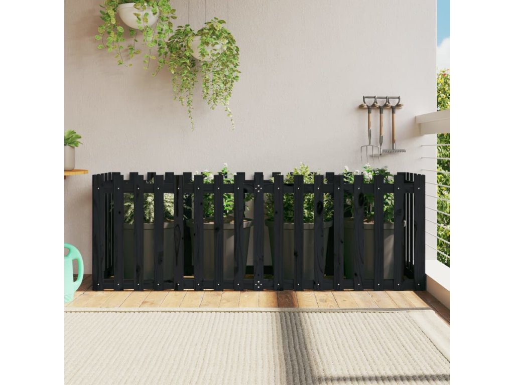 Vyvýšený záhon plotový design černý 200x50x70 cm masiv borovice 832514