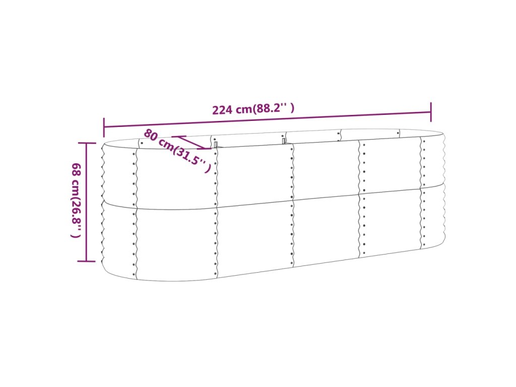 Vyvýšený záhon pozinkovaná ocel 224x80x68 cm hnědý 318955