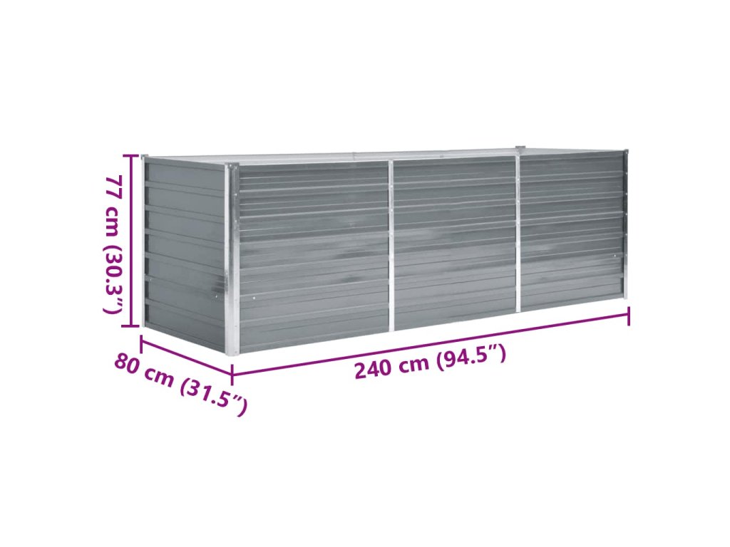 Vyvýšený záhon pozinkovaná ocel 240 x 80 x 77 cm šedý 44840