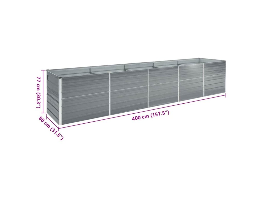 Vyvýšený záhon pozinkovaná ocel 400 x 80 x 77 cm šedý 47060