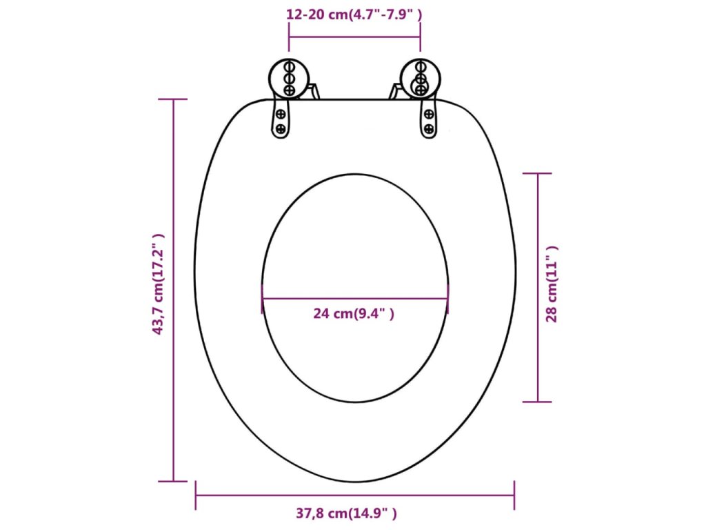 Víko i sedátko z MDF zaručují dlouhotrvající pevnost, odolnost a výdrž. Jelikož je toto WC sedátko určené pro dlouhodobé užívání, je vybavené panty, zhotovenými z extrémně silné a odolné slitiny chromu a zinku. Záchodové prkénko sedí na všechny běžné záchodové mísy. Šířka mezi panty je nastavitelná v rozmezí od 12 do 20 cm. Montáž i údržba WC sedátka jsou snadné.