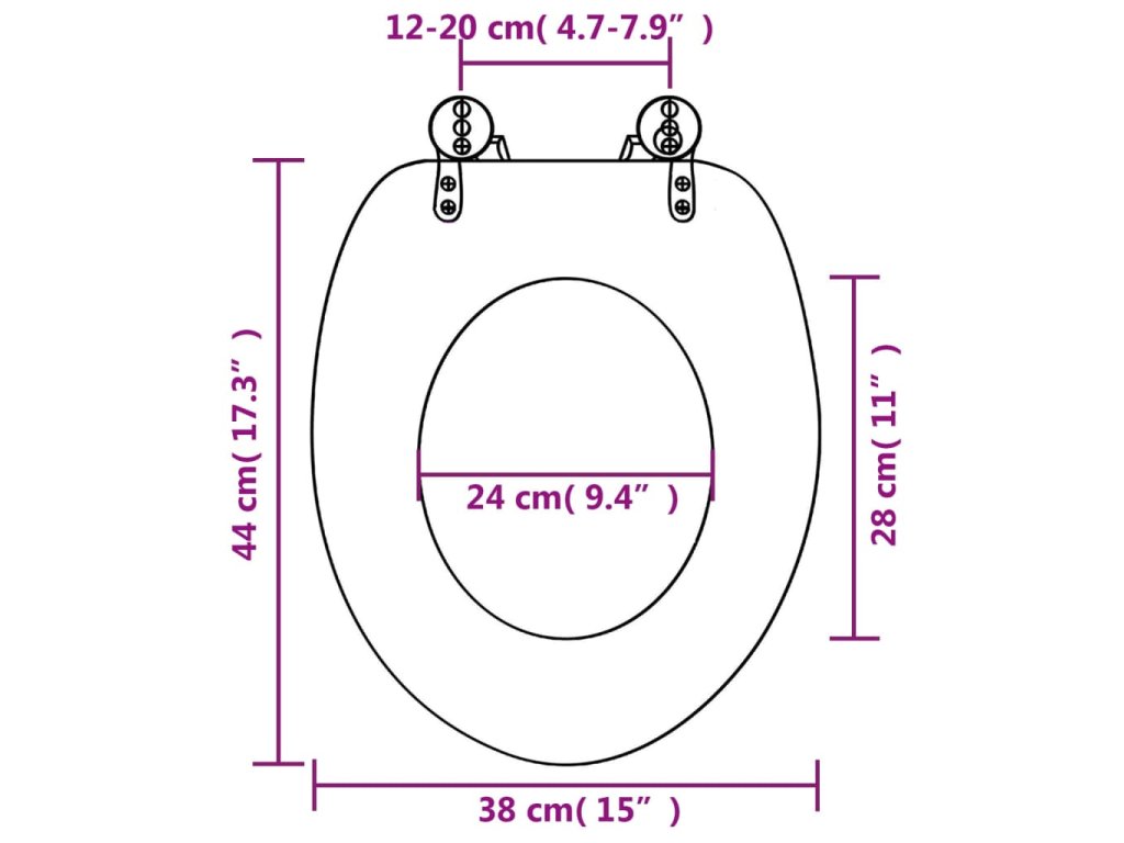 Víko a sedátko jsou zhotovena z MDF desky, takže jsou pevná a odolná. Panty jsou vyrobené z extrémně silné slitiny chromu a zinku. Toaletní prkénko disponuje funkcí pomalého sklápění, víko se tedy zavírá a otevírá pomalu a tiše, aby nedělalo přílišný hluk a vydrželo vám sloužit dlouhé roky.