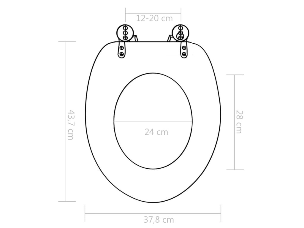 Víko a sedátko jsou zhotovena z MDF desky, takže jsou pevná a odolná. Panty jsou vyrobené z extrémně silné slitiny chromu a zinku. Toaletní prkénko disponuje funkcí pomalého sklápění, víko se tedy zavírá a otevírá pomalu a tiše, aby nedělalo přílišný hluk a vydrželo vám sloužit dlouhé roky.