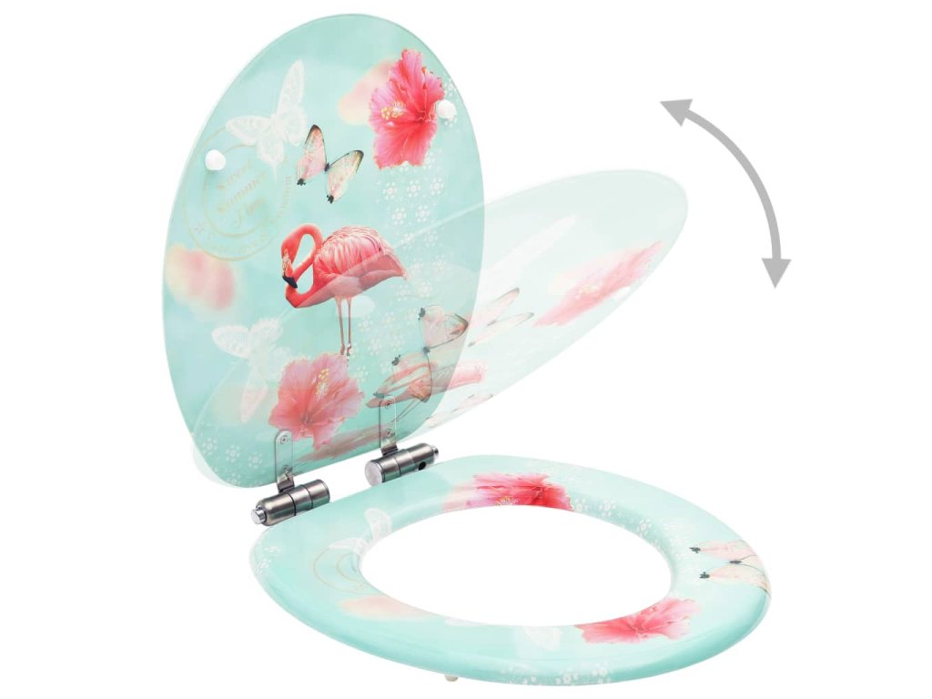 WC sedátko s funkcí pomalého sklápění MDF motiv plameňáka 146912