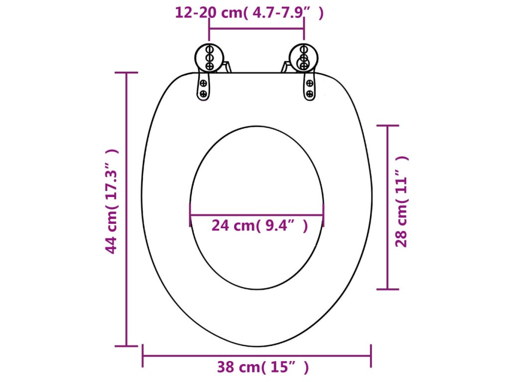 WC sedátko sedí na všechny běžné toaletní mísy a vzdálenost pantů lze nastavit mezi 12 a 20 cm.