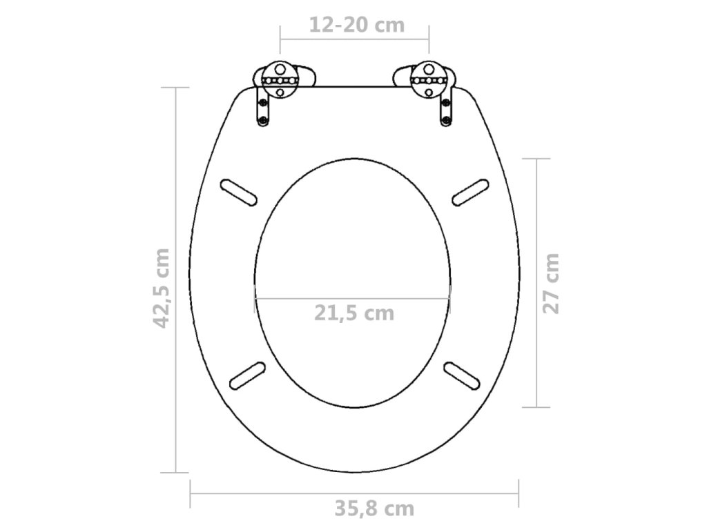 MDF víko a sedátko je velmi pevné, tvrdé a odolné. Je doplněné panty zhotovenými z extra silné a odolné slitiny chromu a zinku. Je designované pro dlouhodobou životnost.