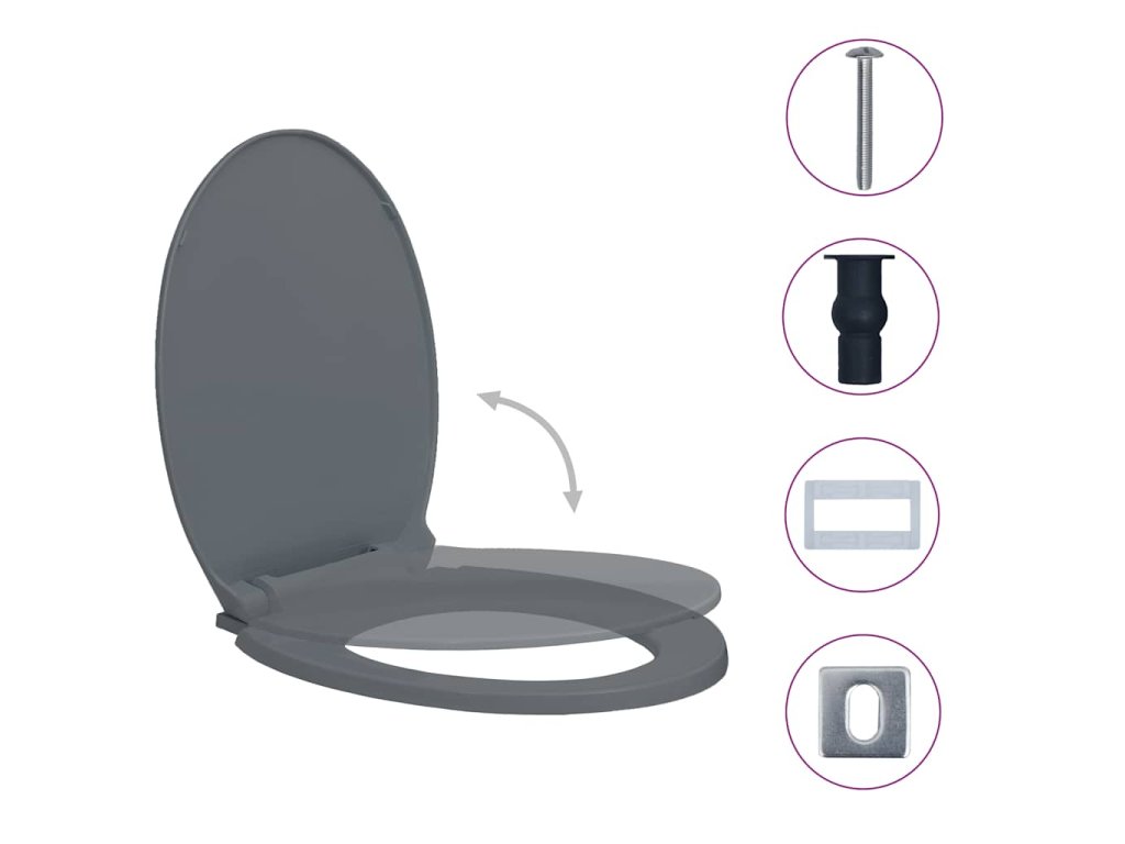 WC sedátko s pomalým sklápěním rychloupínací šedé oválné 145817