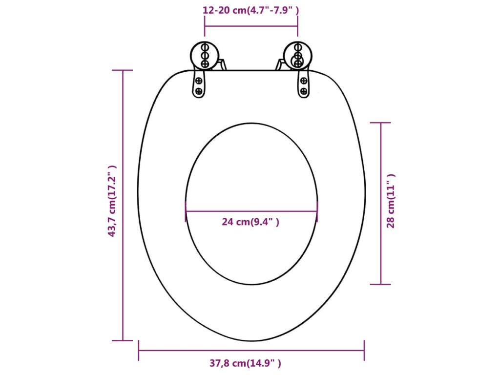 Toto toaletní sedátko pasuje na všechny obvyklé toaletní mísy, protože má nastavitelnou rozteč pantů v rozmezí 12 až 20 cm. A co víc, sedátko se snadno instaluje i čistí.