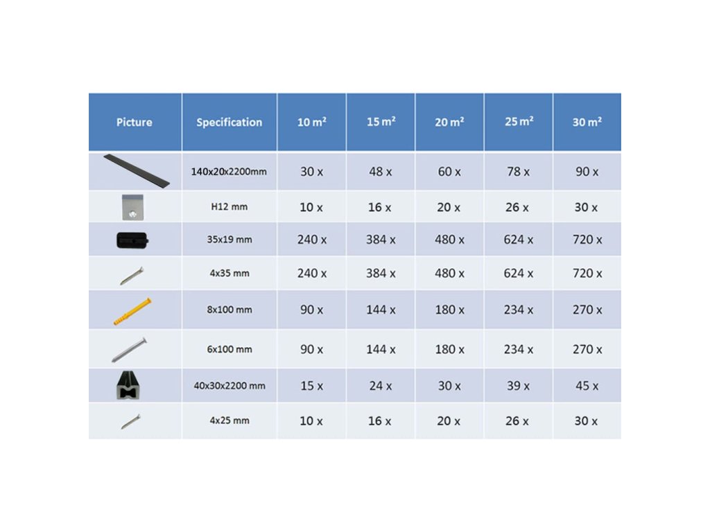 - 10 x montážní klip startovací (nerezová ocel)