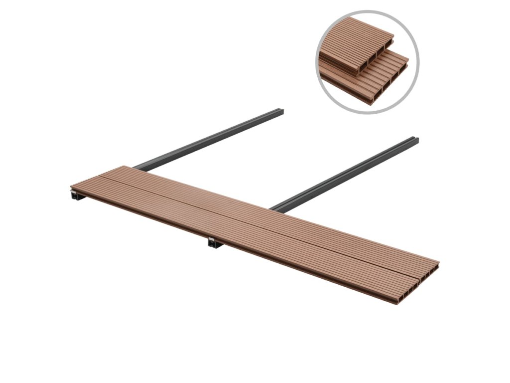 Tato kompletní sada podlahy na terasu, skládající se z dřevoplastových prken a příslušenství a pokrývající 16 m², se perfektně hodí na terasy, balkóny nebo okolí bazénů či vířivek.