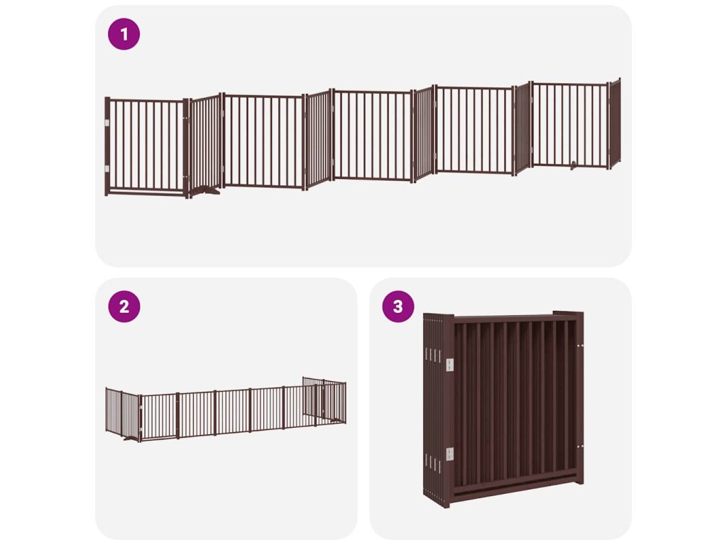 Zábrana pro psy s dvířky skládací 10 panelů hnědá 800 cm topol 3155751