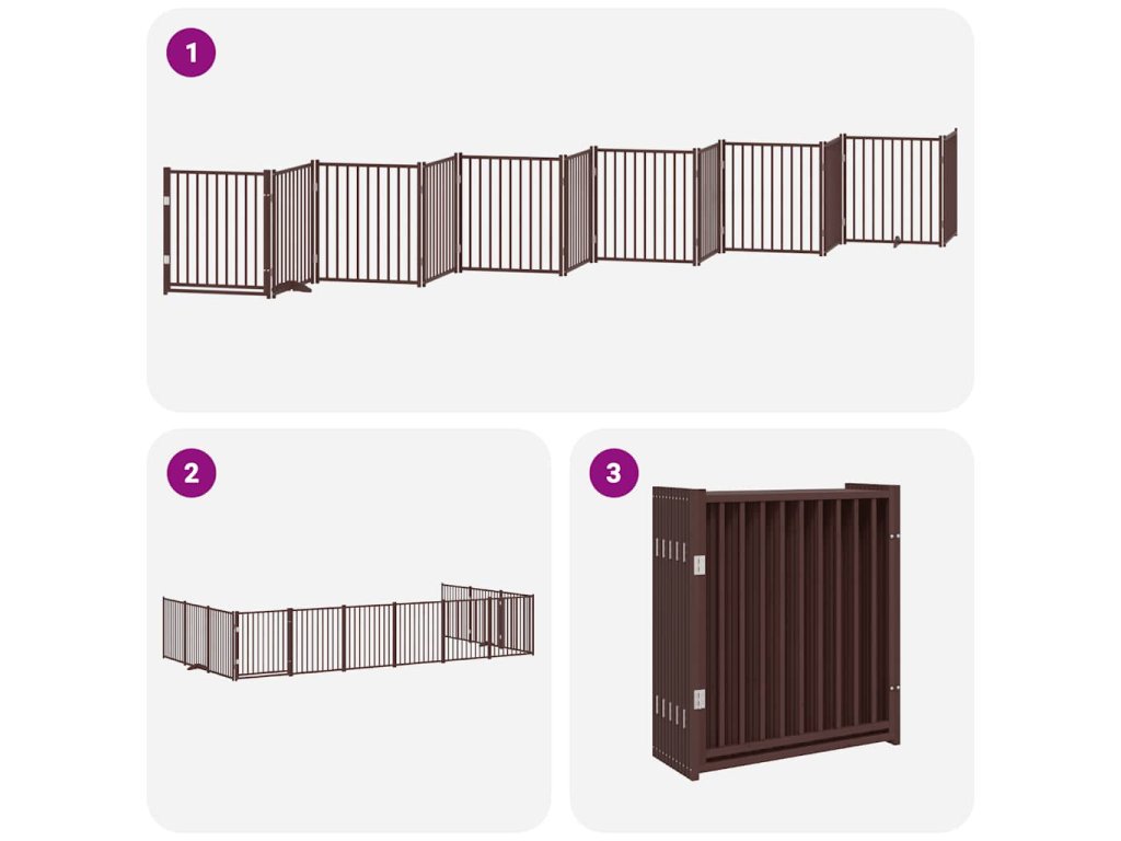 Zábrana pro psy s dvířky skládací 12 panelů hnědá 960 cm topol 3155752