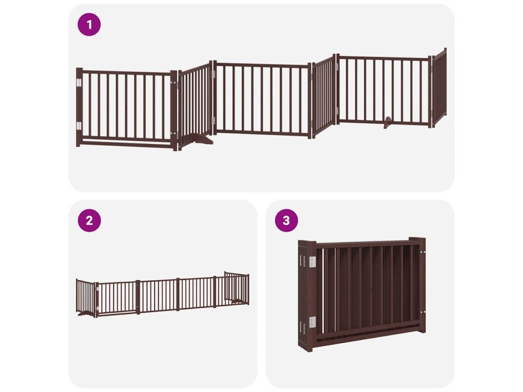Zábrana pro psy s dvířky skládací 6 panelů hnědá 480 cm topol 3155745