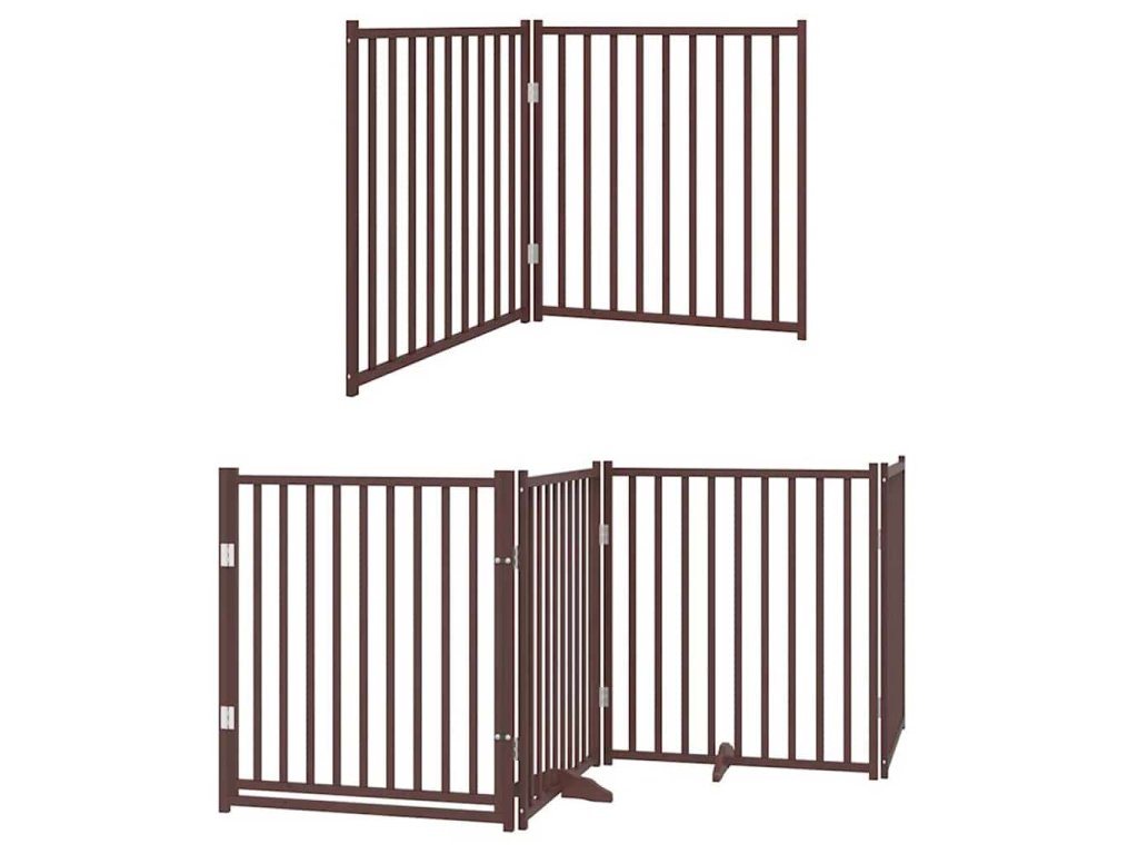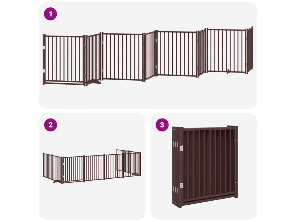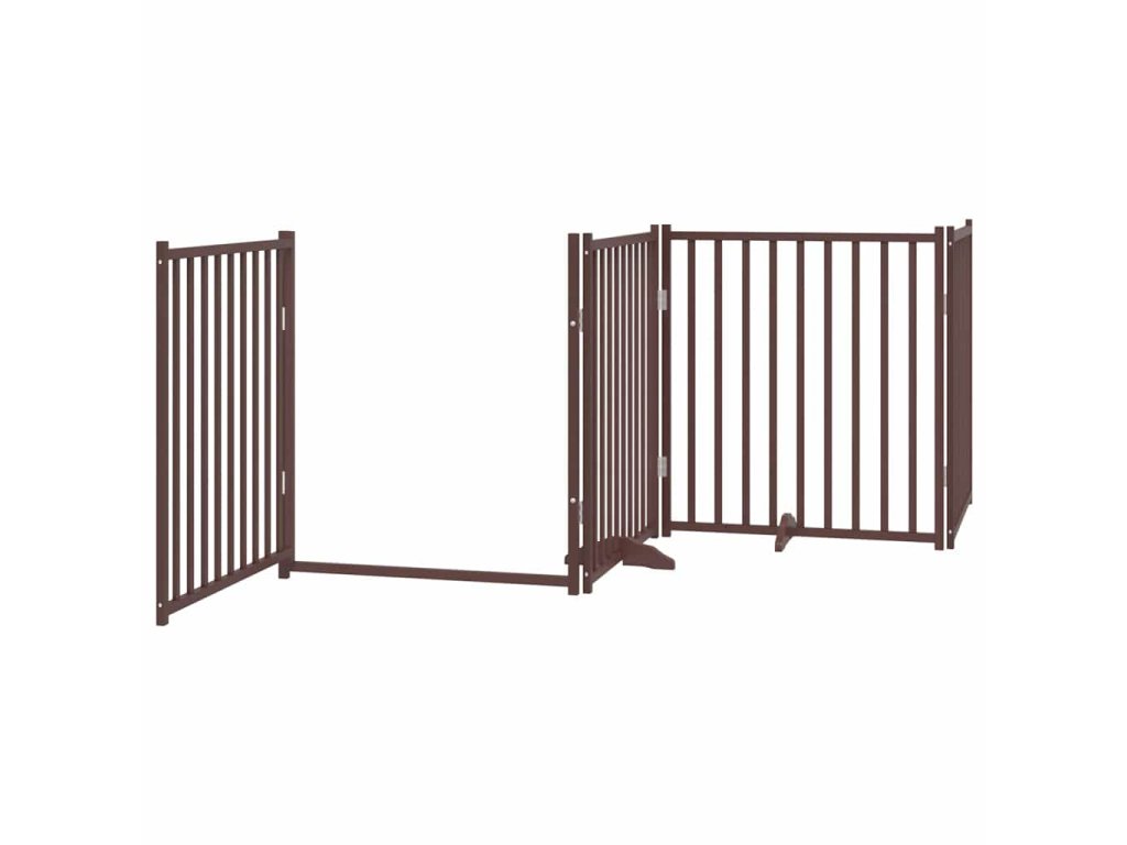 Zábrana pro psy s dvířky skládací 8 panelů hnědá 640 cm topol 3155750