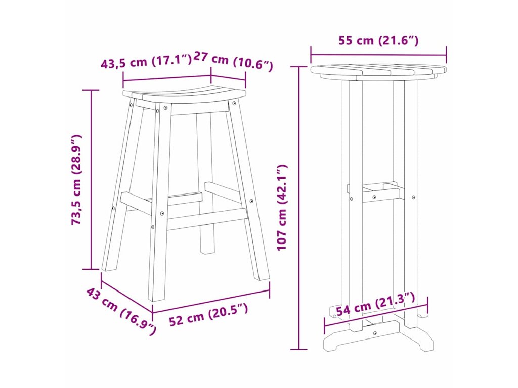 - Odolný materiál: Vyrobeno z polyethylenu s vysokou hustotou (HDPE), známého svou kvalitou a odolností proti počasí. Tato zahradní barová sada zajišťuje dlouhotrvající kvalitu, překonává UV záření a vodu, což znamená klidné využití venku i při slunečném počasí.
