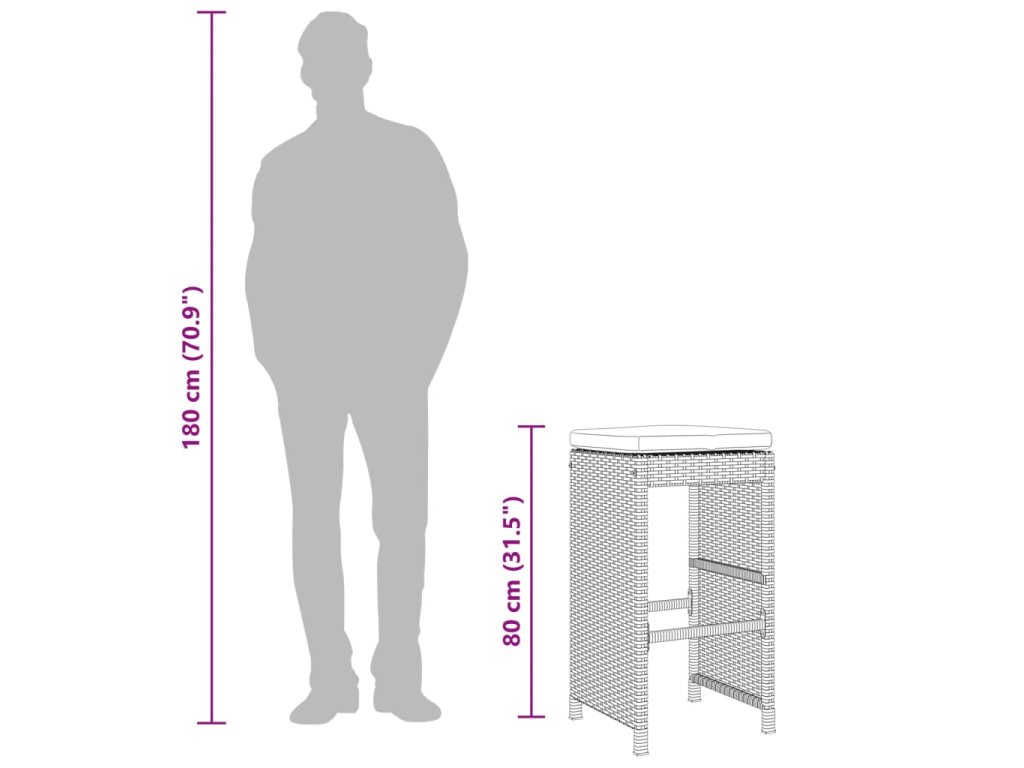 Zahradní barové židle s poduškami 6 ks šedé polyratan 368693