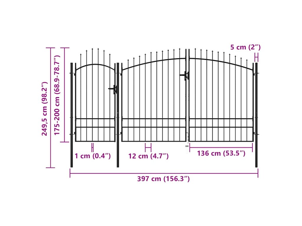 Elegantní zaoblený design naší brány je velmi atraktivní. Silné vodorovné výztuhy zpevňují její rám a zvyšují její bezpečnost. Naše brána tak tvoří nejen působivý vstup na váš pozemek, ale také spolehlivou bariéru. Je vyrobená z oceli a ošetřená práškovým lakem, který ji chrání před rzí a korozí. Zahradní brána je rovněž vybavená zámkem. Dodáváme ji spolu se třemi sloupky s pevnými závěsy pro snadnou instalaci. Součástí dodávky je též zemní otočná zarážka, která umožňuje zajistit obě křídla brány na místě pro větší bezpečnost. Tato branka je skvělou kombinací stylu, pevnosti a stability!