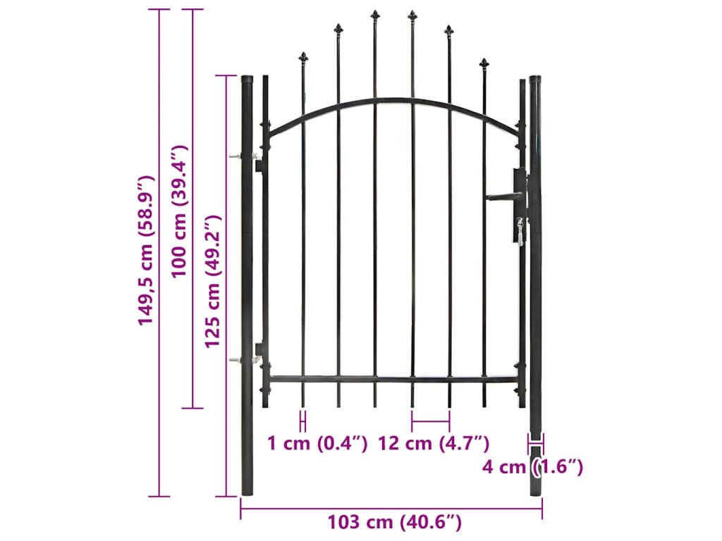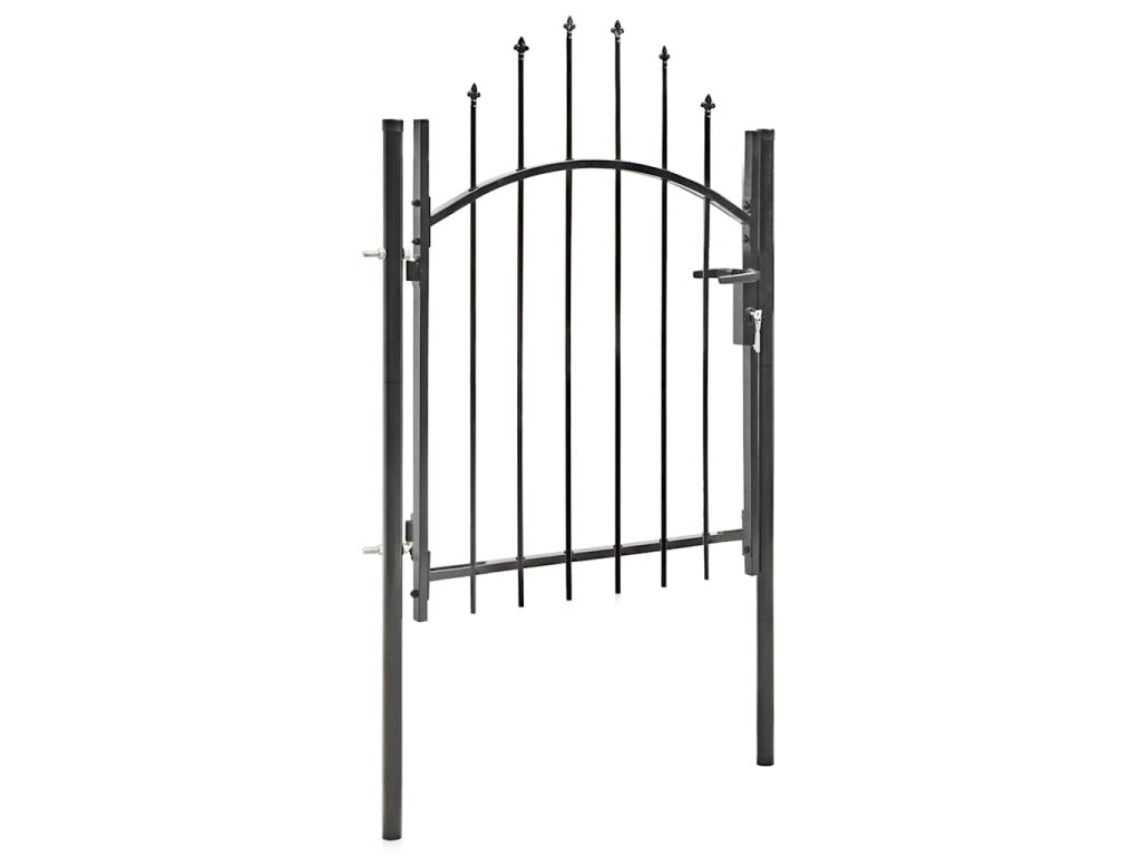 Elegantní zaoblený design naší branky je velmi atraktivní. Silné vodorovné příčky zpevňují její rám a zvyšují její bezpečnost. Naše branka tak tvoří nejen působivý vstup na váš pozemek, ale také spolehlivou bariéru. Je vyrobená z vysoce odolné oceli a ošetřená práškovým lakem, který ji chrání před rzí a korozí. Zahradní branka je rovněž vybavena zamykacím systémem. Dodáváme ji spolu se dvěma robustními sloupky s pevnými závěsy pro snadnou instalaci.