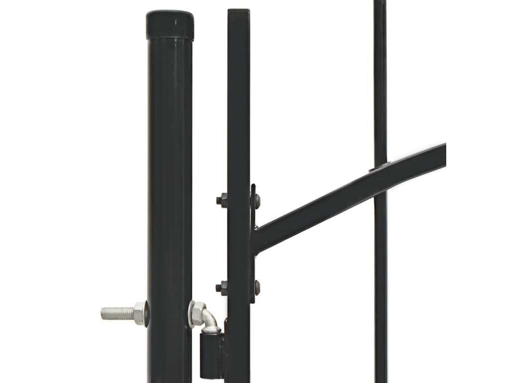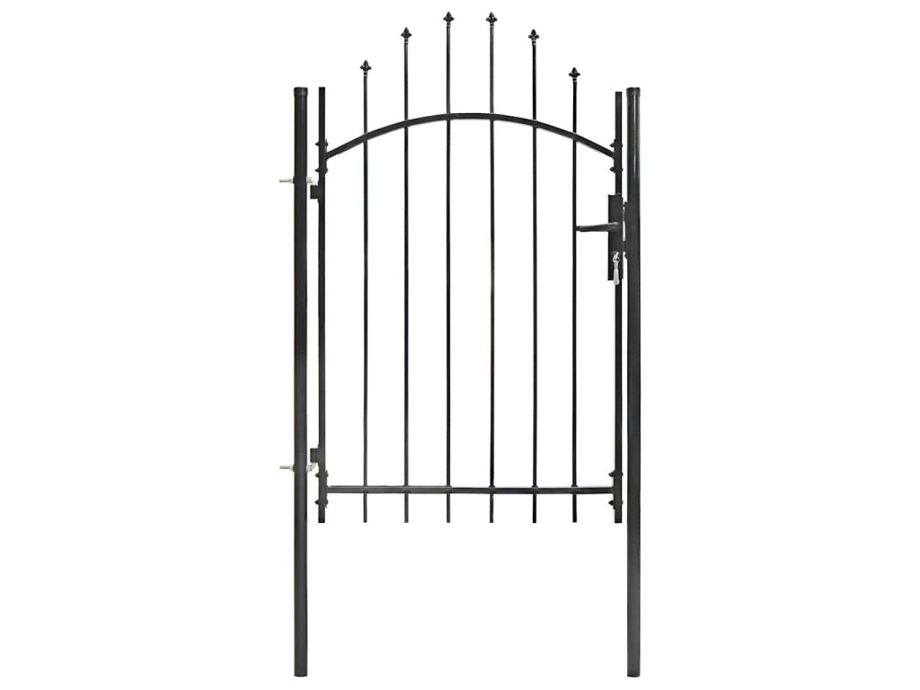 Elegantní zaoblený design naší branky je velmi atraktivní. Silné vodorovné příčky zpevňují její rám a zvyšují její bezpečnost. Naše branka tak tvoří nejen působivý vstup na váš pozemek, ale také spolehlivou bariéru. Je vyrobená z vysoce odolné oceli a ošetřená práškovým lakem, který ji chrání před rzí a korozí. Zahradní branka je rovněž vybavena zamykacím systémem. Dodáváme ji spolu se dvěma robustními sloupky s pevnými závěsy pro snadnou instalaci.