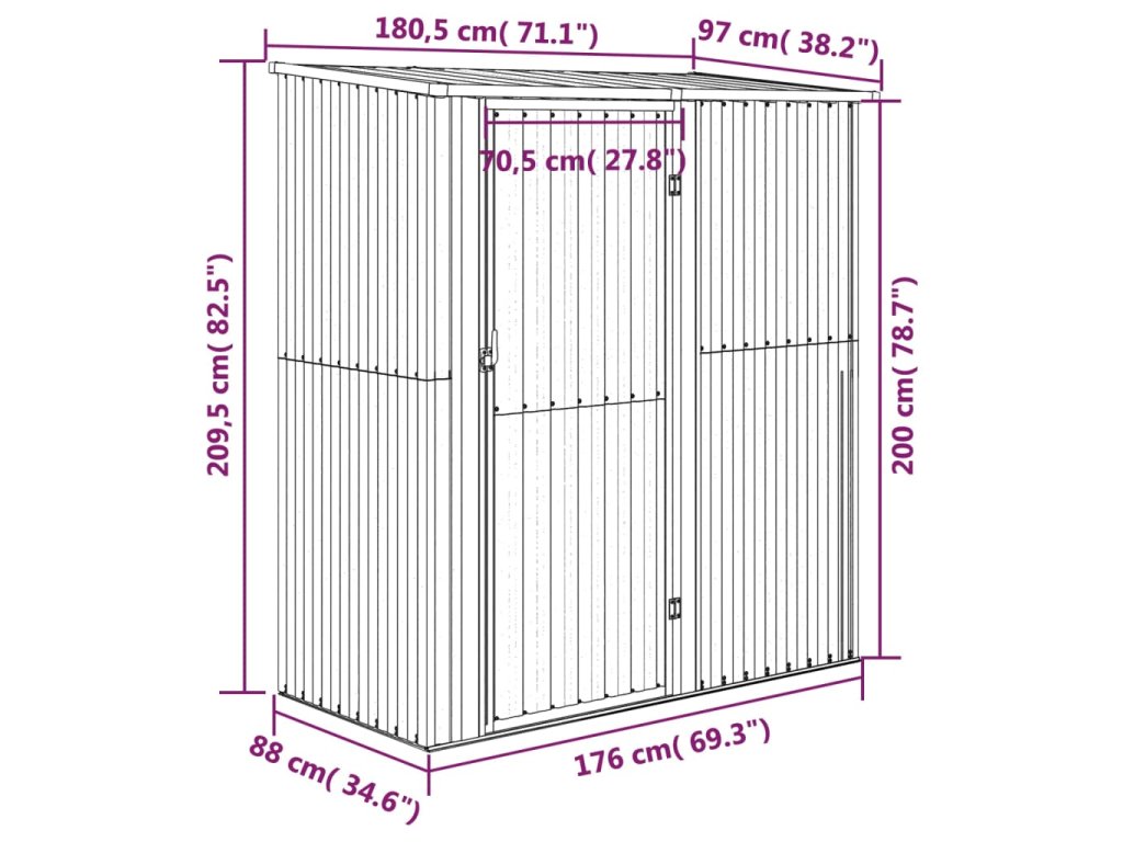 - Prémiový materiál: Tento venkovní domek je vyroben z pozinkované oceli a vyžaduje minimální údržbu a je mimořádně odolný.