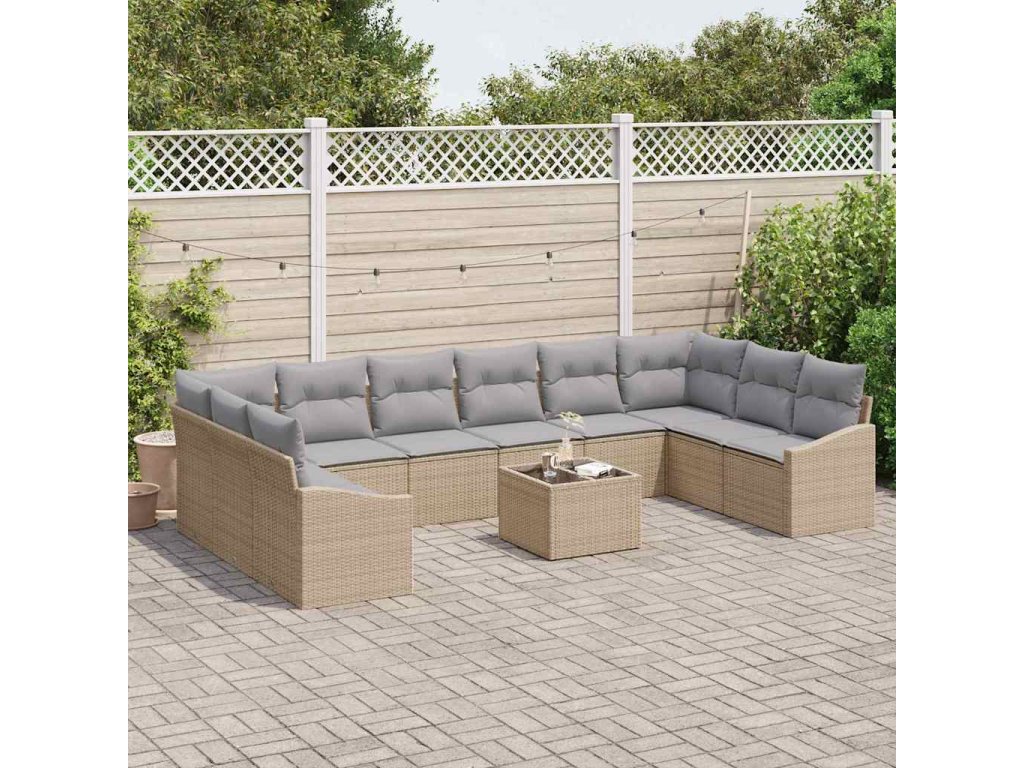 Zahradní jídelní souprava 11 pcs Béžová a Světle šedá 3355579