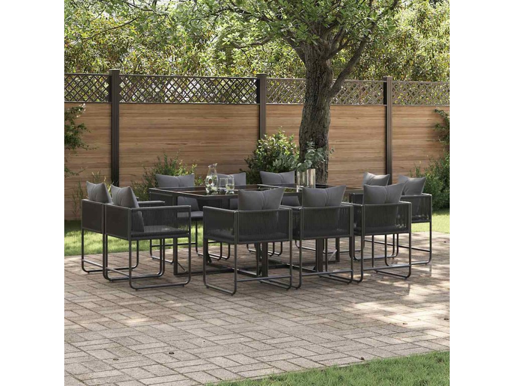 Zahradní jídelní souprava 11 pcs Černá Ocel 3335884