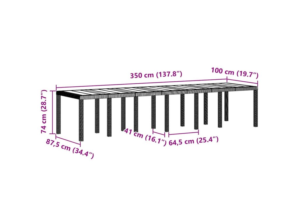 - Sofistikovaný design: Tato zahradní jídelní souprava zosobňuje štíhlý a minimalistický styl, což z ní činí ideální doplněk pro moderní venkovní prostory. Její moderní estetičnost je definována čistými liniemi a obdélníkovým tvarem, který bezproblémově zapadá do různých dekorativních stylů, čímž zvyšuje jak funkci, tak formu ve vaší zahradě.